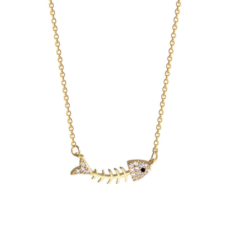 Collar de espina de pescado de acero inoxidable de moda, joyería de oro 585, cadena de clavícula de circonita irregular simple y salvaje.