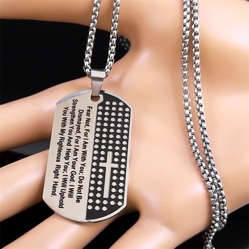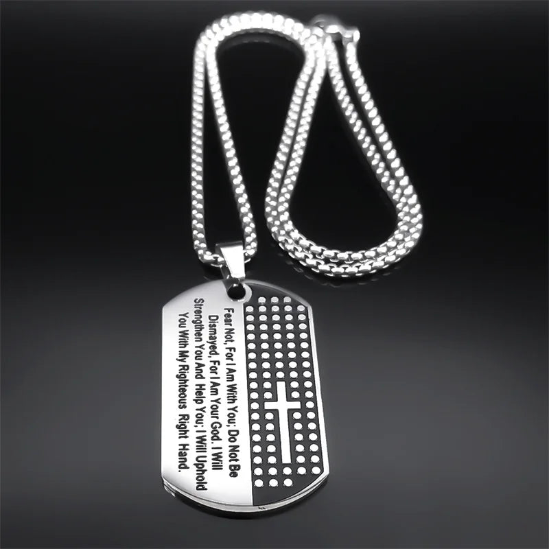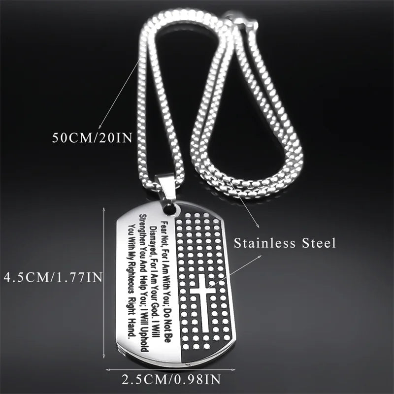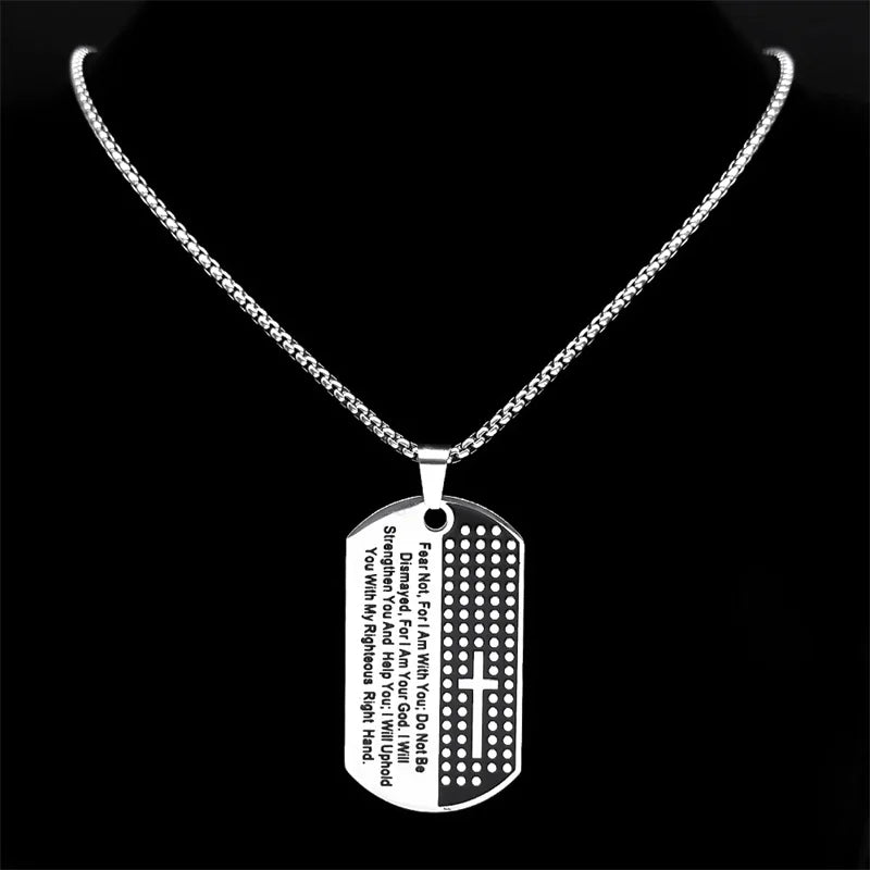 No temas, porque yo estoy contigo. Collar con cruz cristiana para mujer y hombre, de acero inoxidable, con versículo bíblico, placa de identificación, joyería inspiradora.