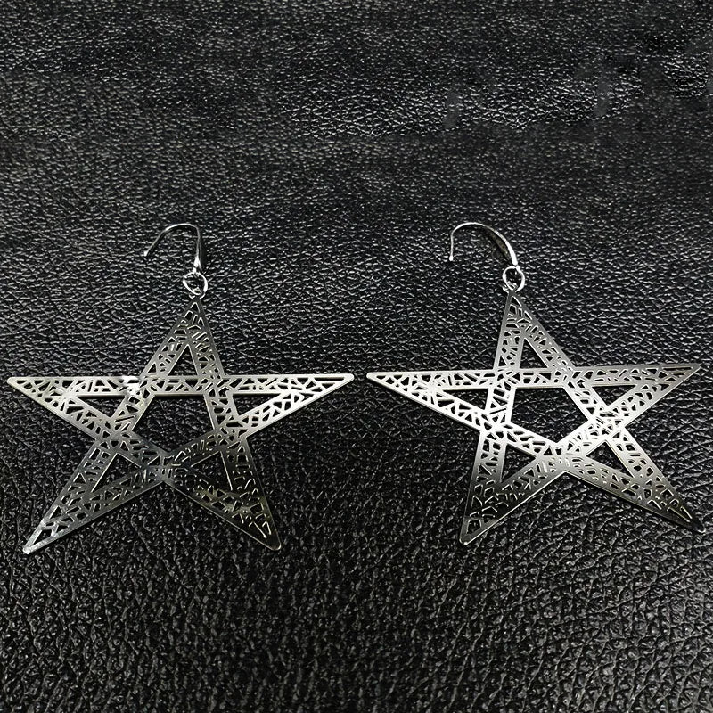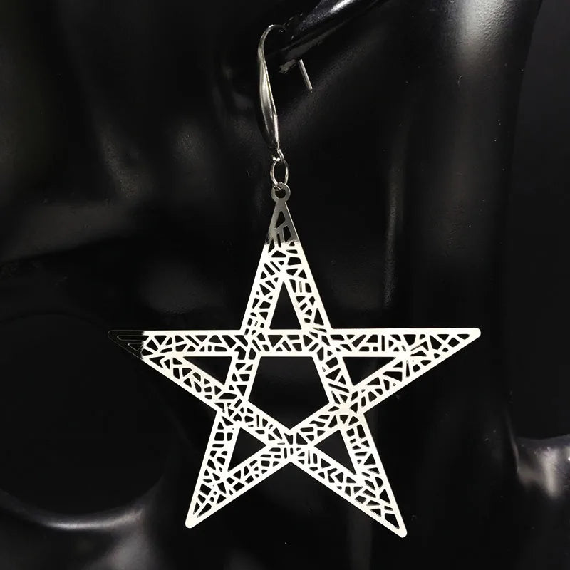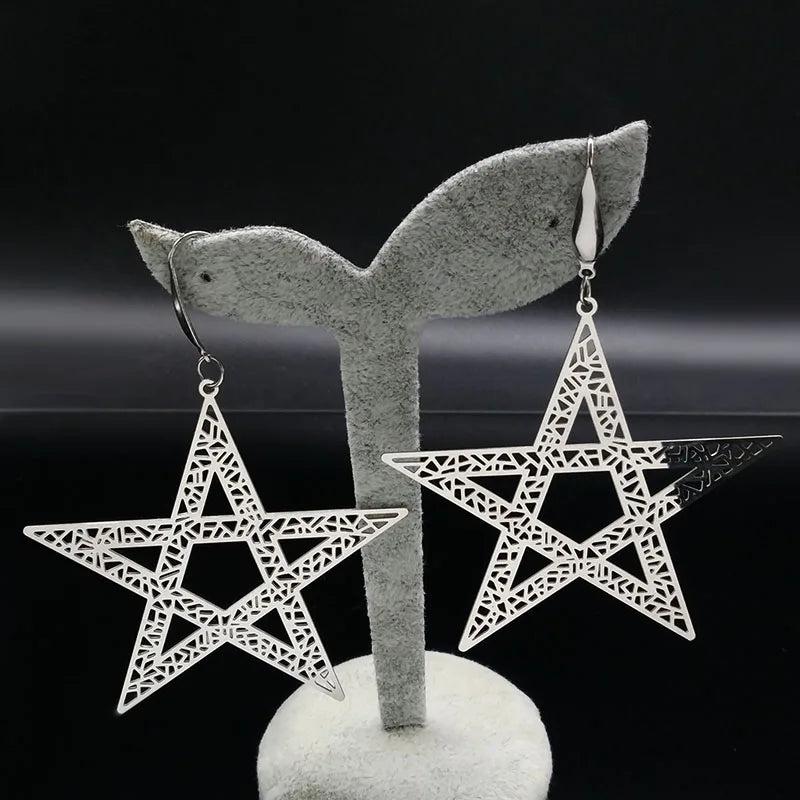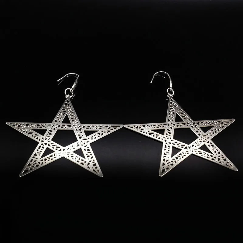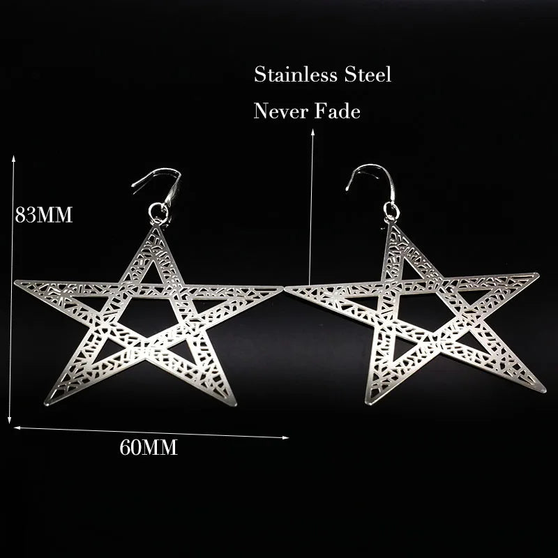 Pendientes colgantes de acero inoxidable con forma de estrella de cinco puntas para mujer, joyería de color plateado, pendientes grandes, joyería