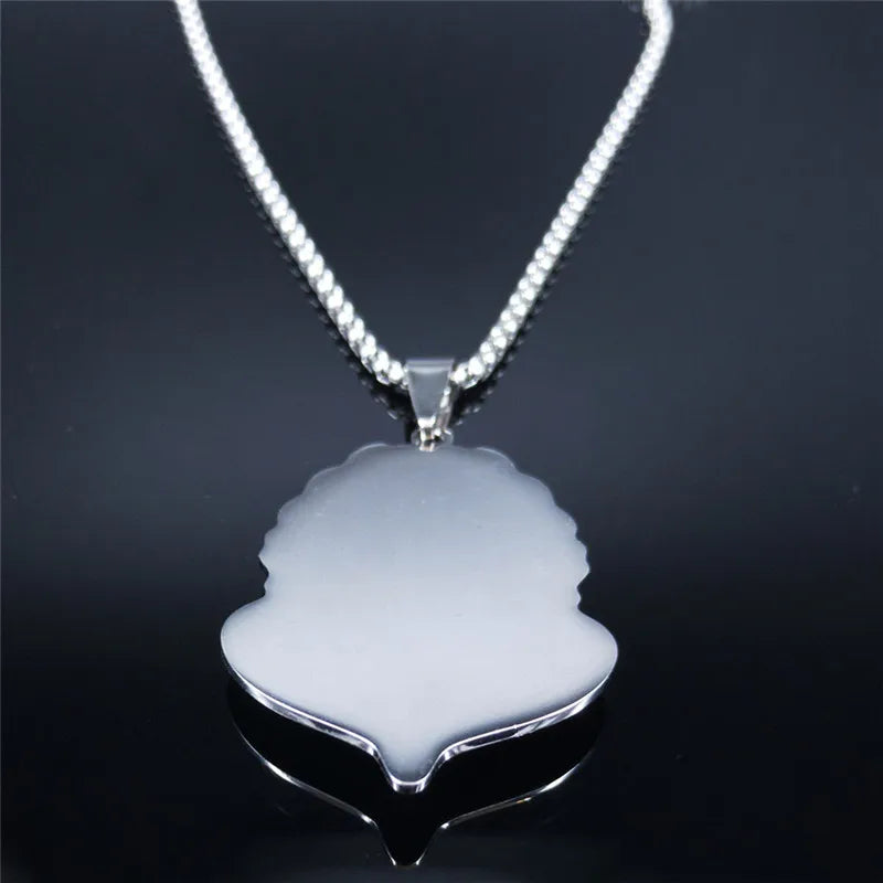 Collar de cadena de acero inoxidable con diseño de diosa del bosque para mujer, color plateado.