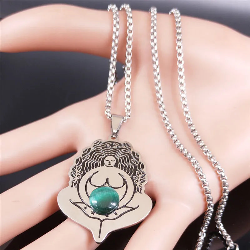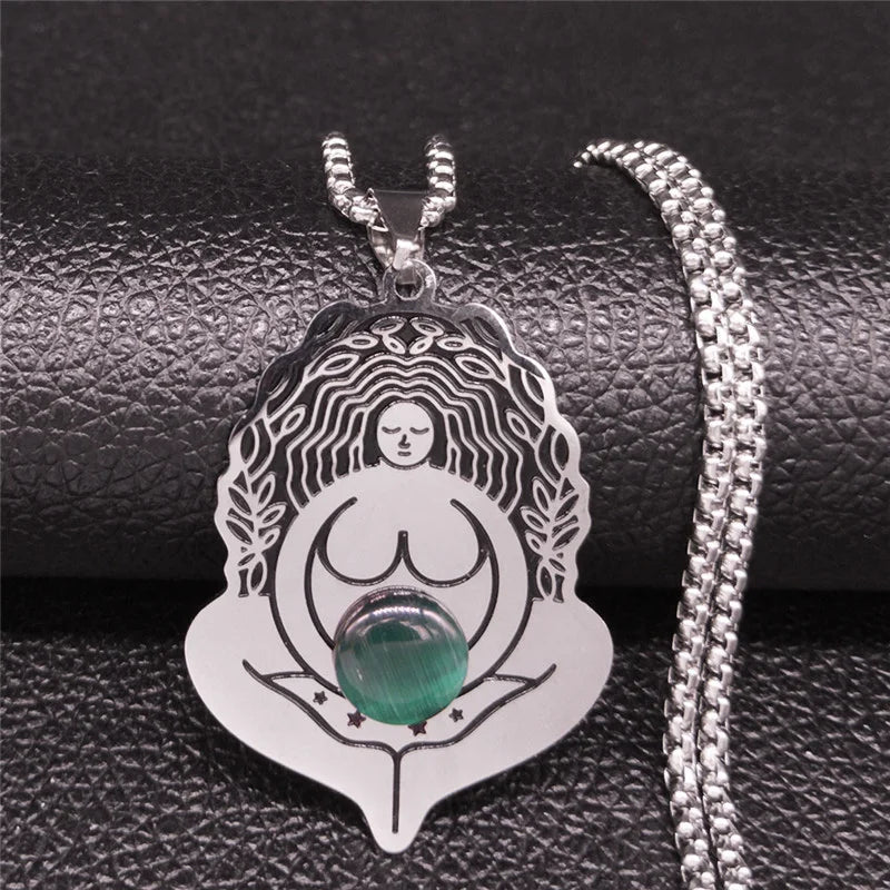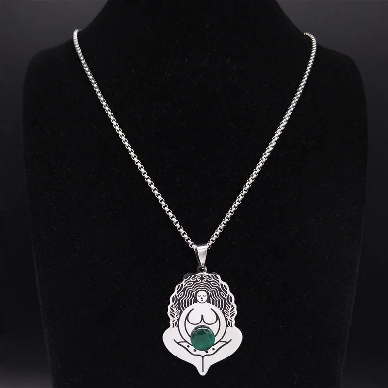 Estilo: Collar de cadena de acero inoxidable con diseño de diosa del bosque
