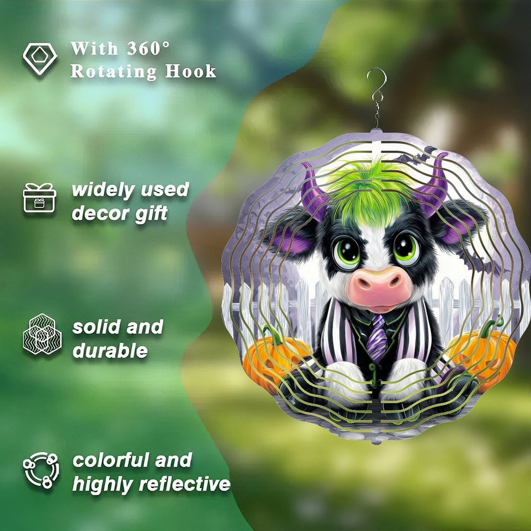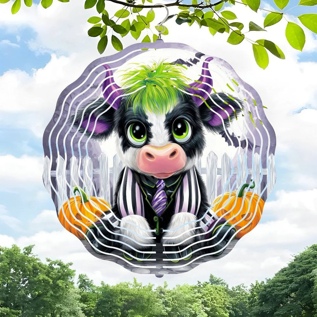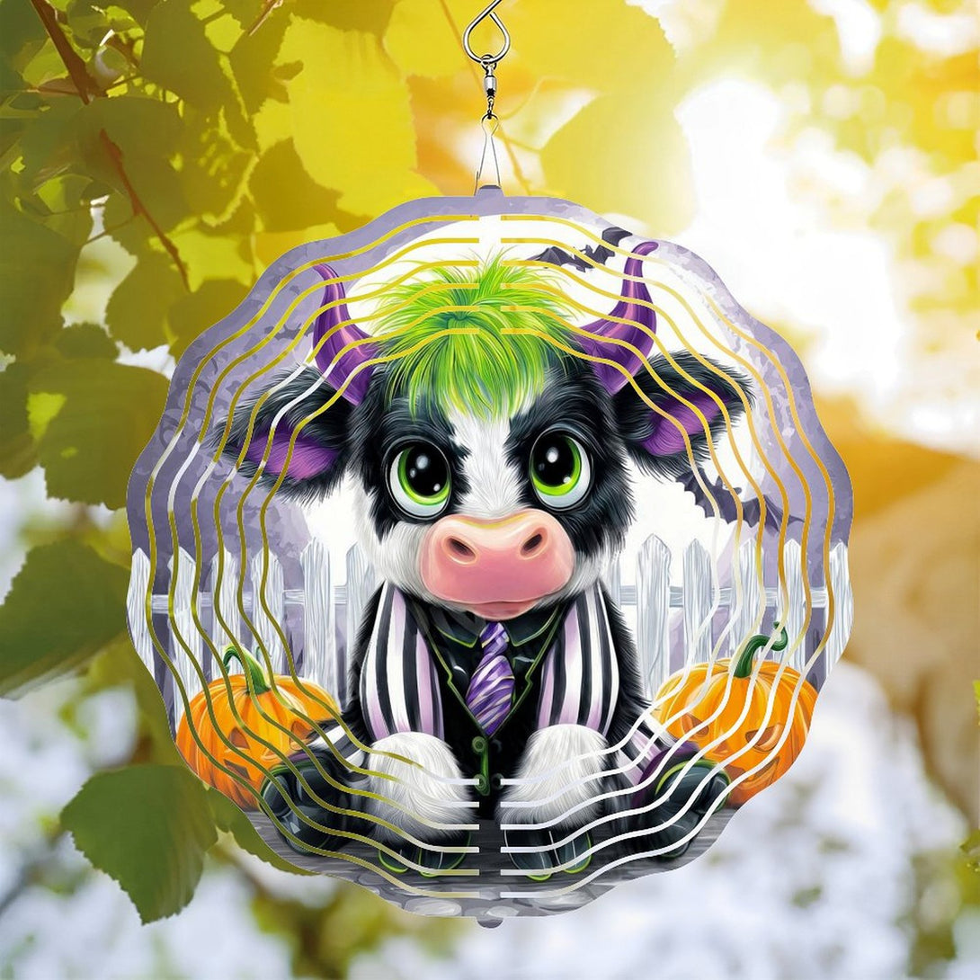,Cute Baby Cow in A Black And White Stripe Suit Wind Chimes, Fall Cow Wind Chimes for Homes, Bars, Offices, Man Caves, Garages, And Living Rooms .Also Makes A Great Gift.Hallo-ween Gift,10*10in(25*25cm)