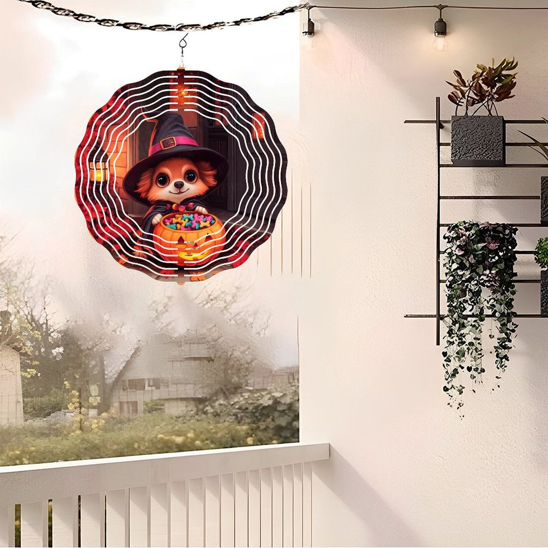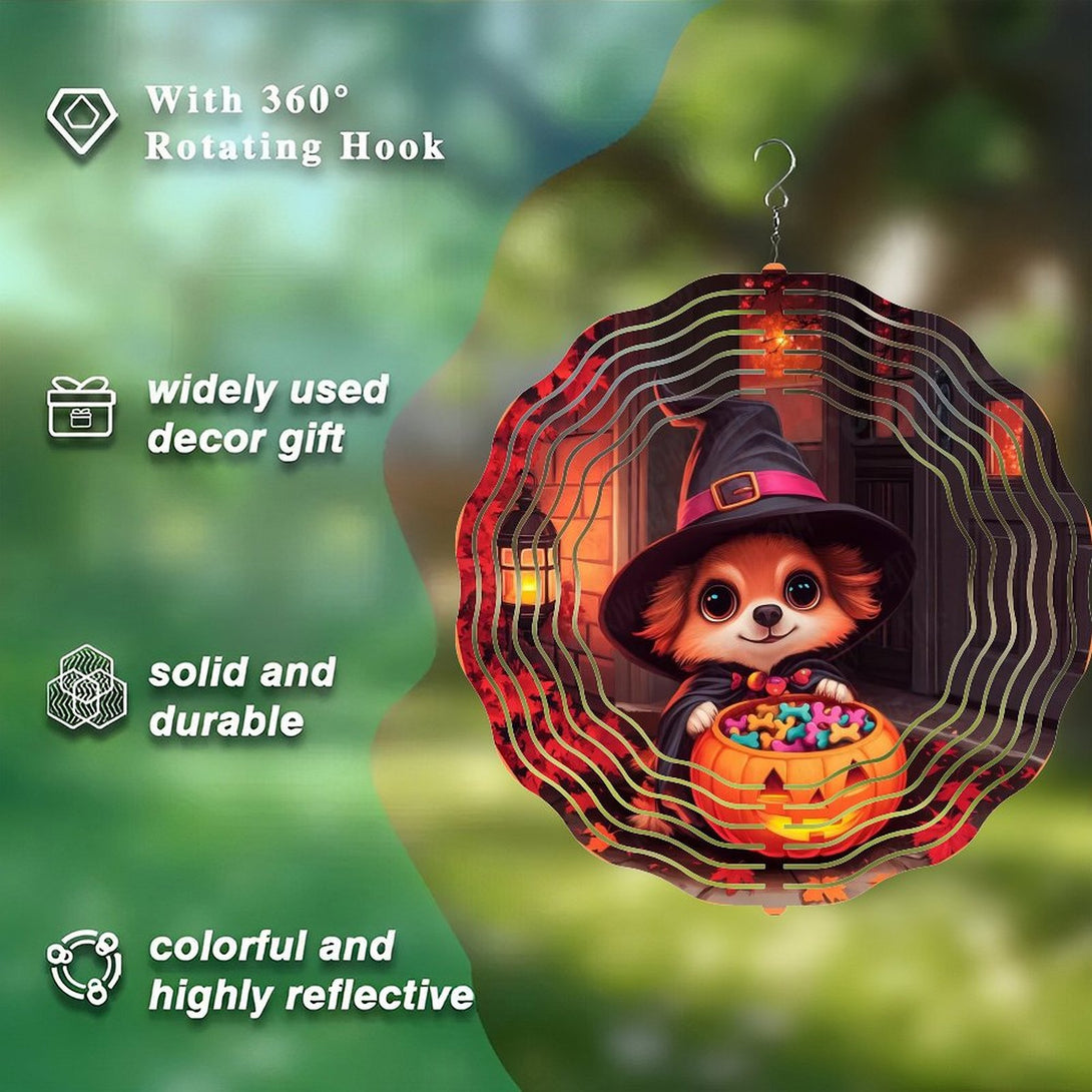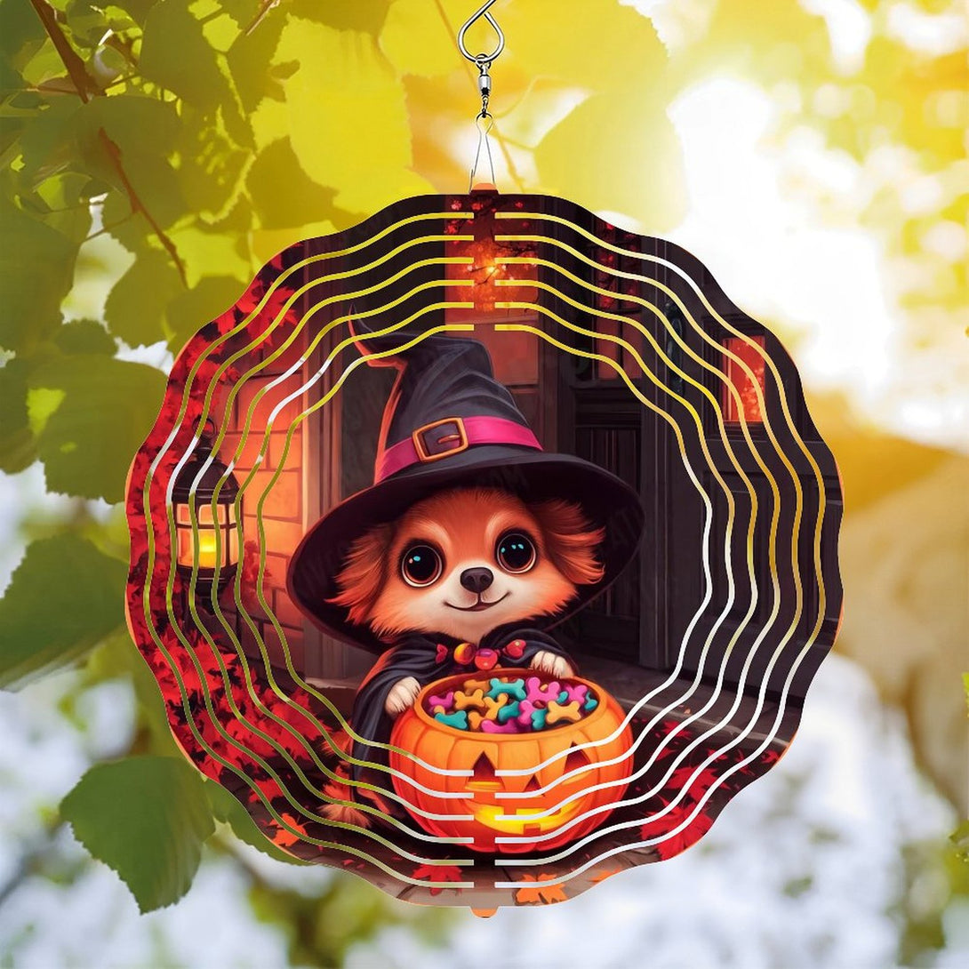 ,Cute Witch Puppy with Treat Pumpkin Wind Chimes, Puppy Dog Decor Wind Chimes for Homes, Bars, Offices, Man Caves, Garages, And Living Rooms .Also Makes A Great Gift.Hallo-ween Gift,10*10in(25*25cm)