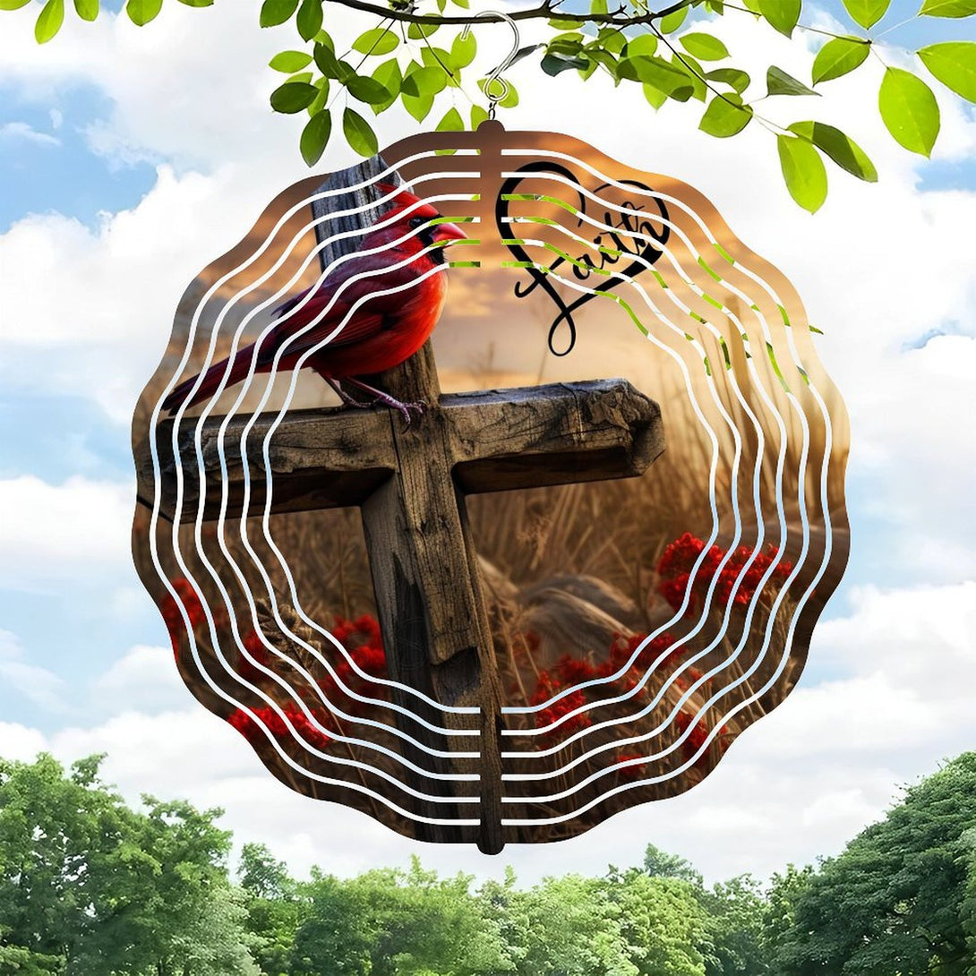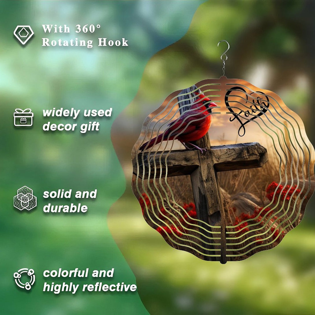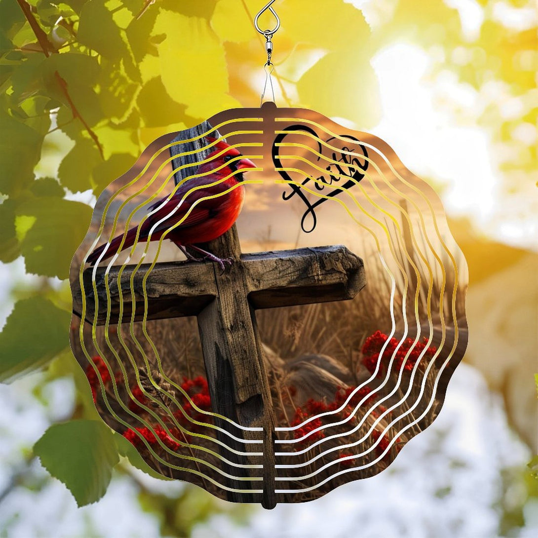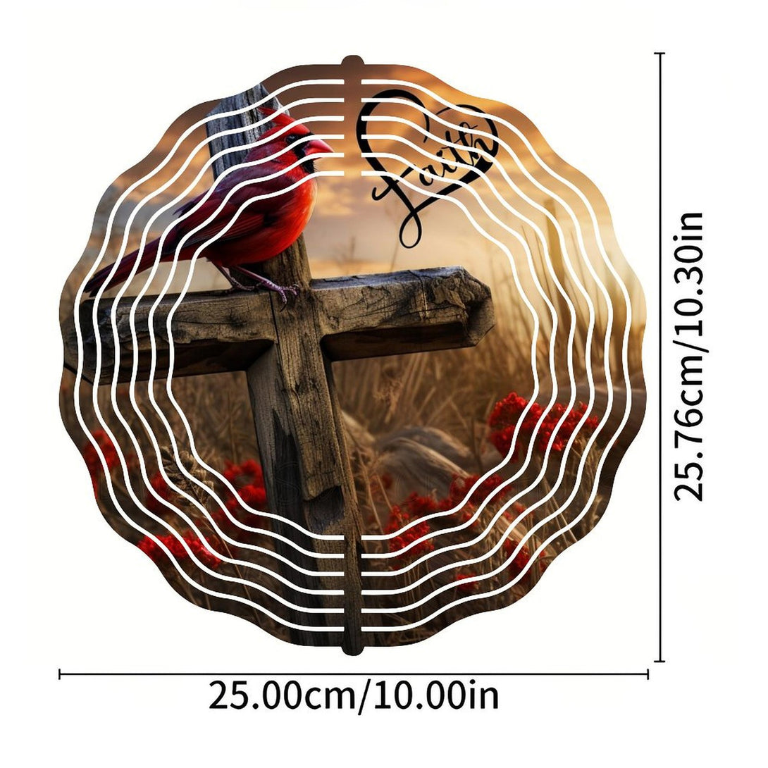 ,Faith Cardinal on Cross Wreath Wind Chimes,home Decor Christian Wind Chimes for Homes, Bars, Offices, Man Caves, Garages, And Living Rooms. Also Makes A Great Gift.,10*10in(25*25cm)