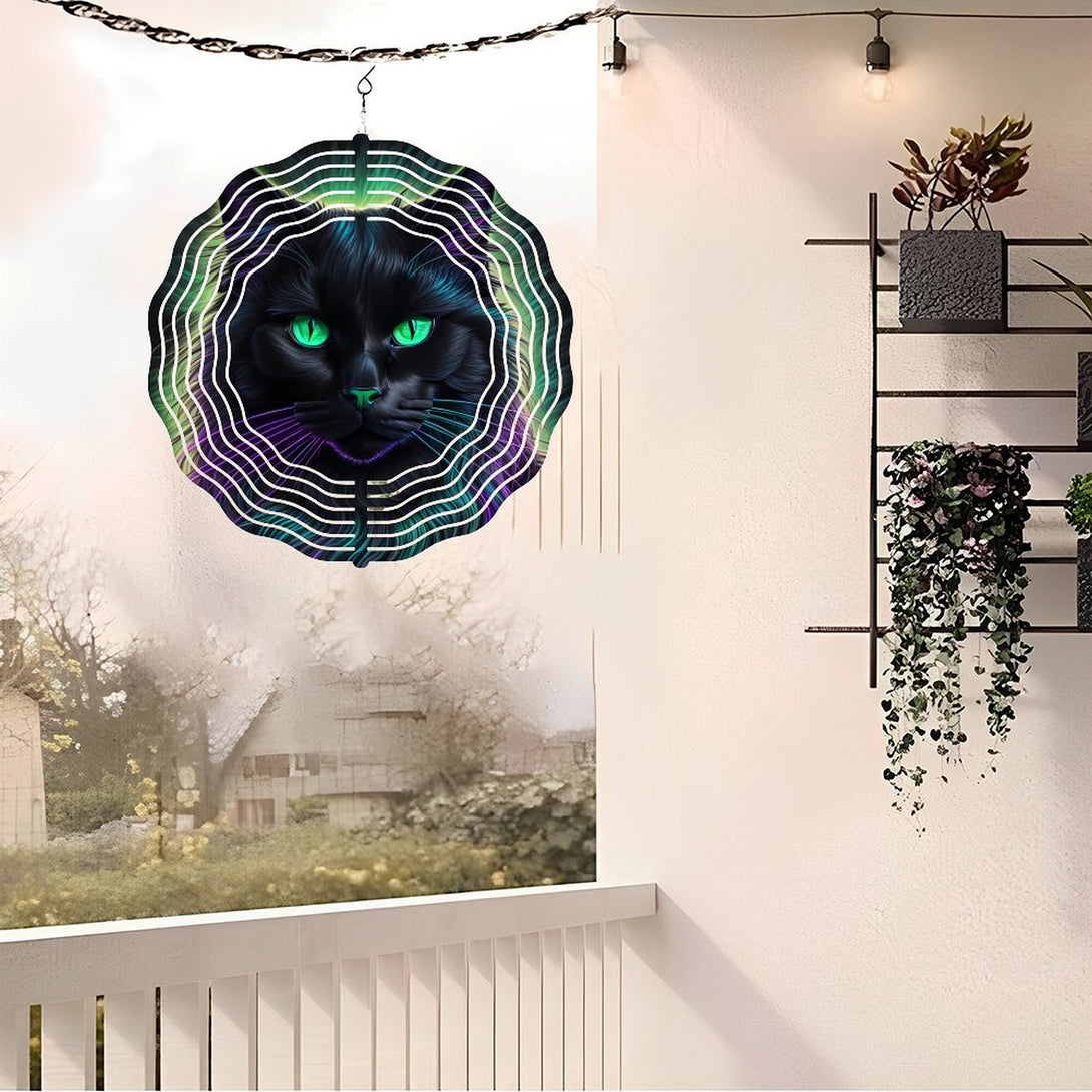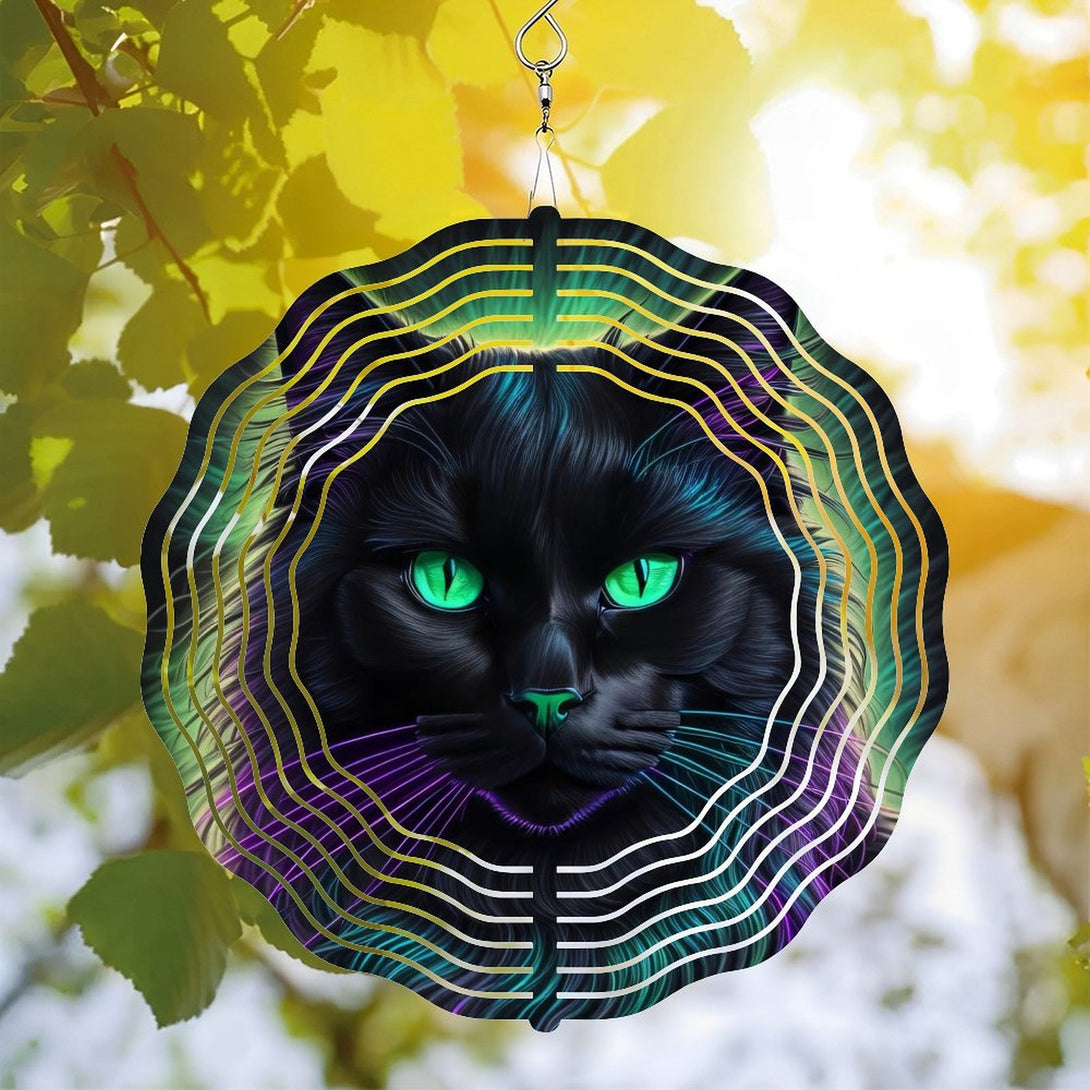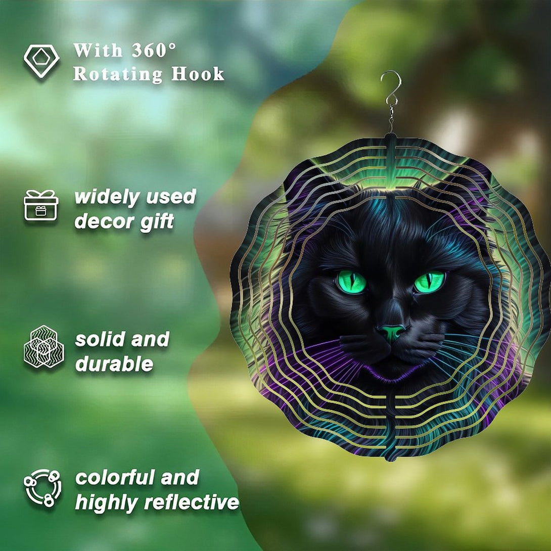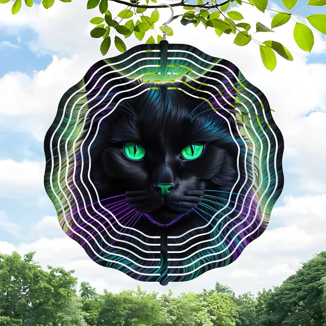 ,Neon Purple Black Cat Halloween Round Metal Wind Chimes for Homes, Bars, Offices, Man Caves, Garages, And Living Rooms. Also Makes A Great Gift.,10*10in(25*25cm)