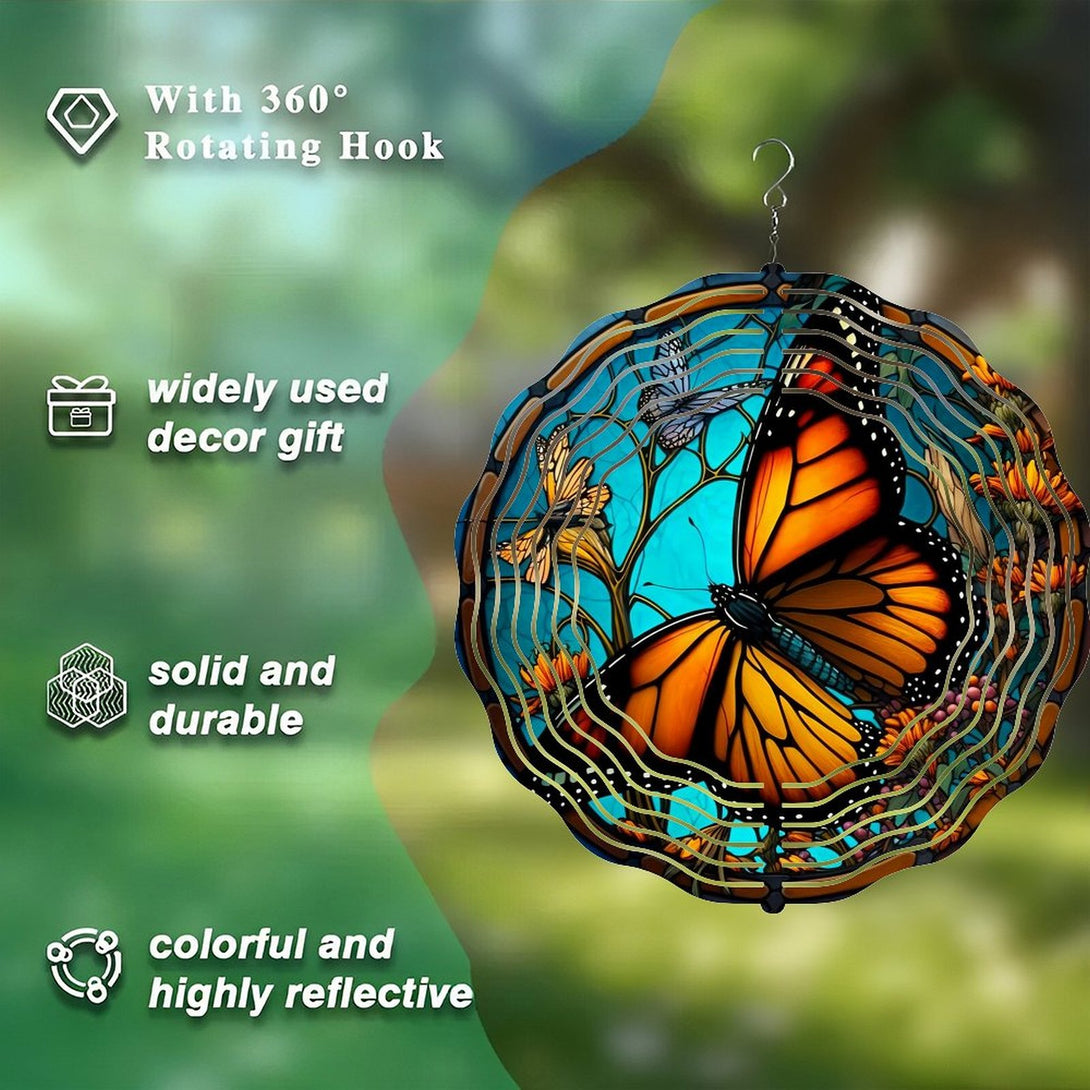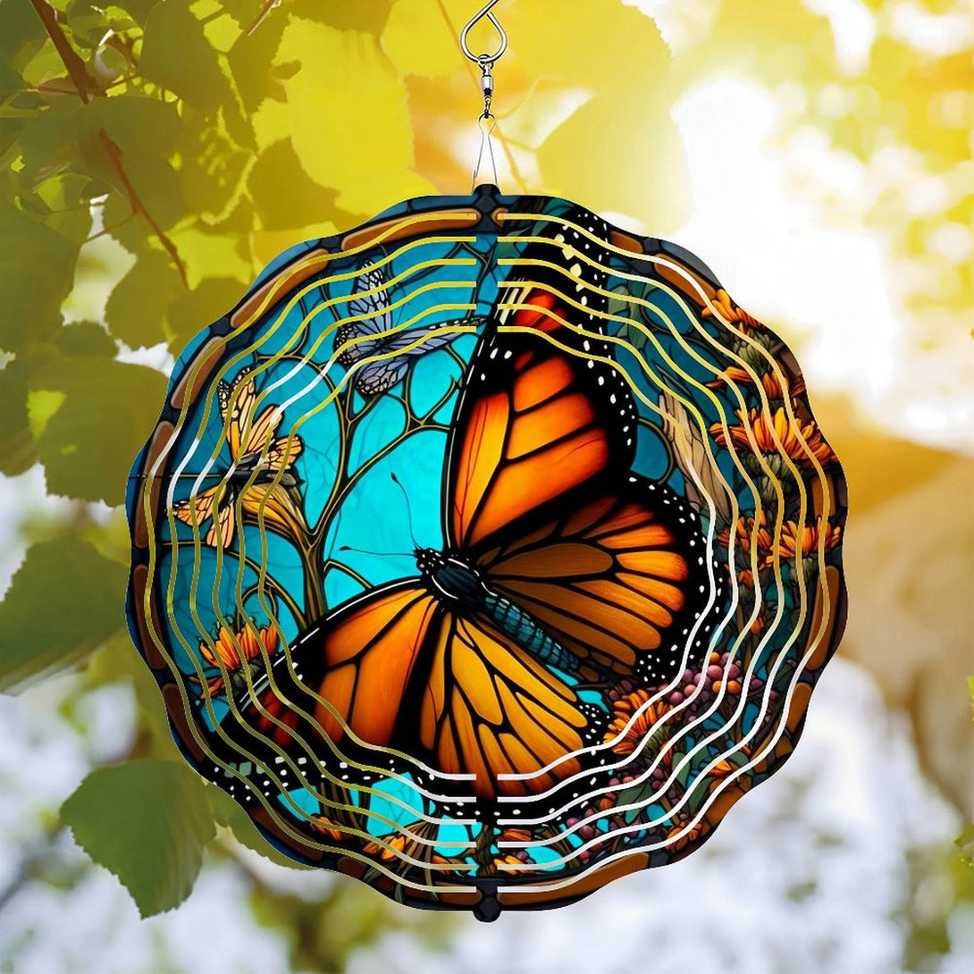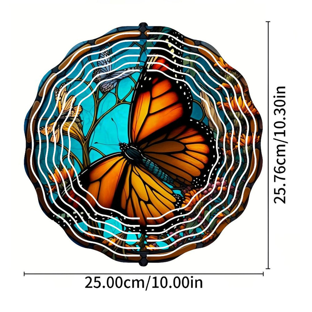 ,Round Faux Stained Glass Butterfly With Teal Background Wind Chimes ,Sugar Pepper Decor Wind Chimes for Homes, Bars, Offices, Man Caves, Garages, And Living Rooms .Also Makes A Great Gift.,10*10in(25*25cm)