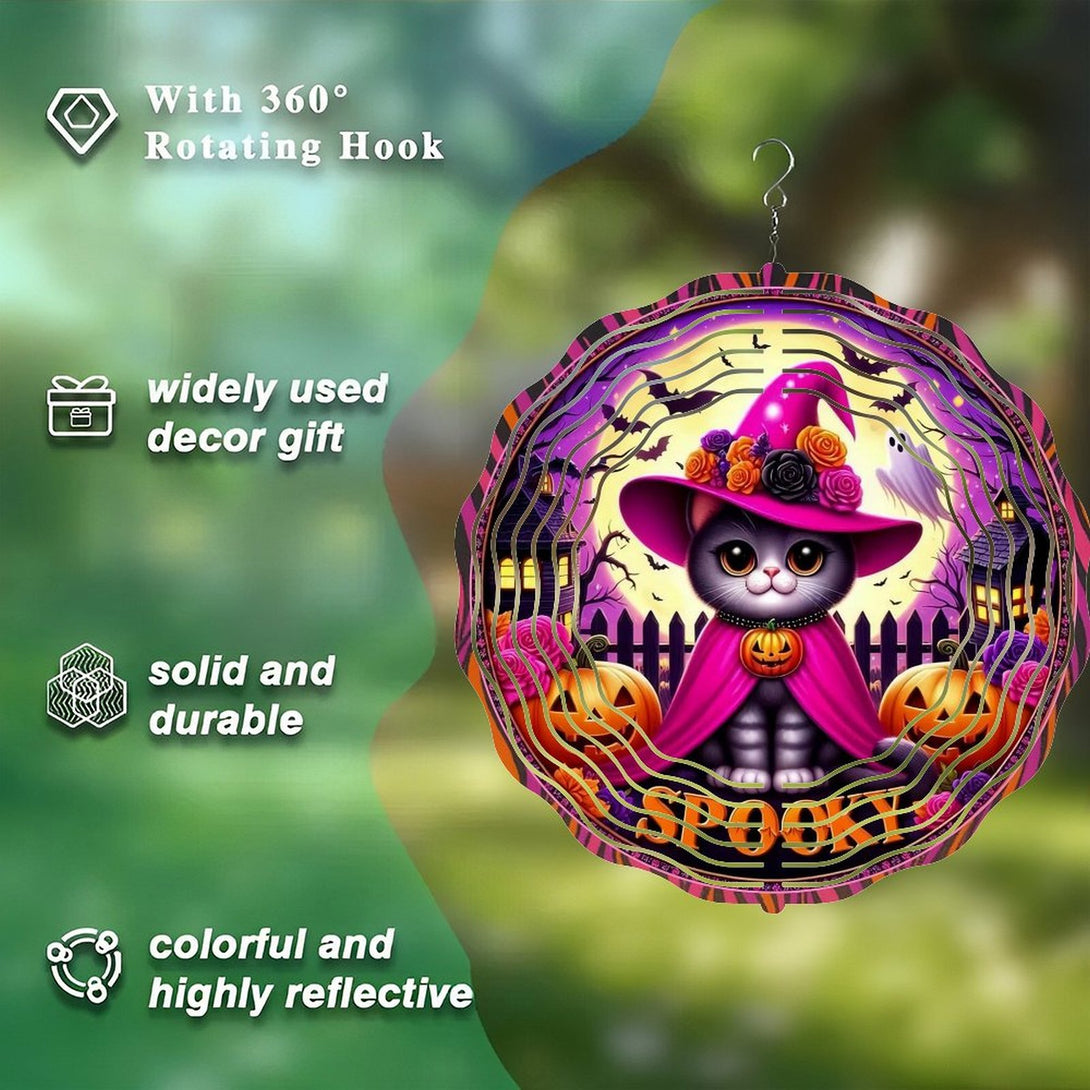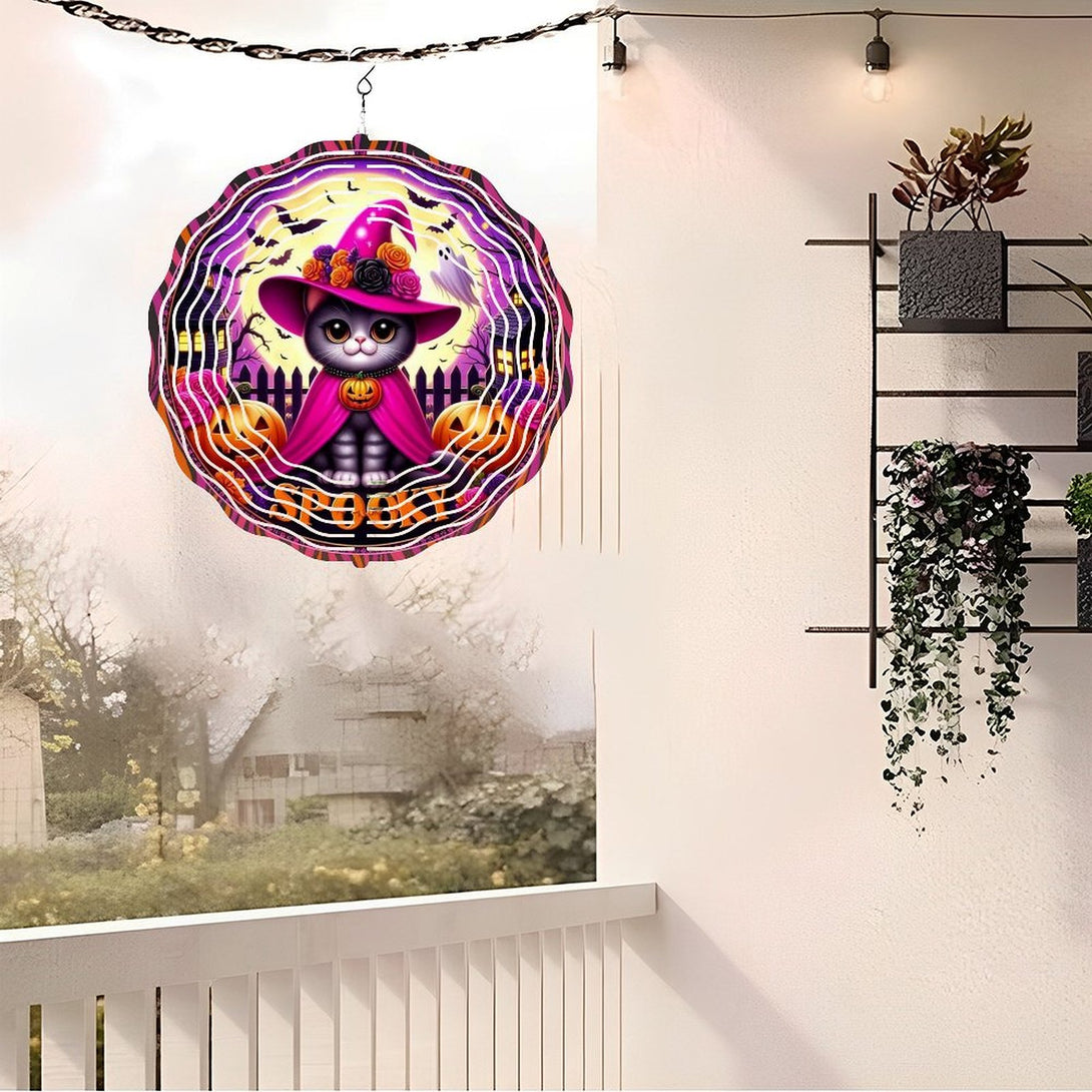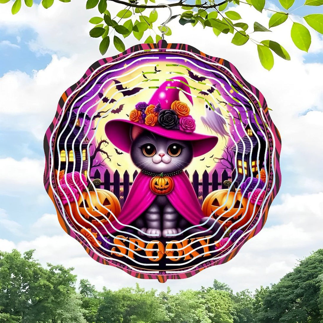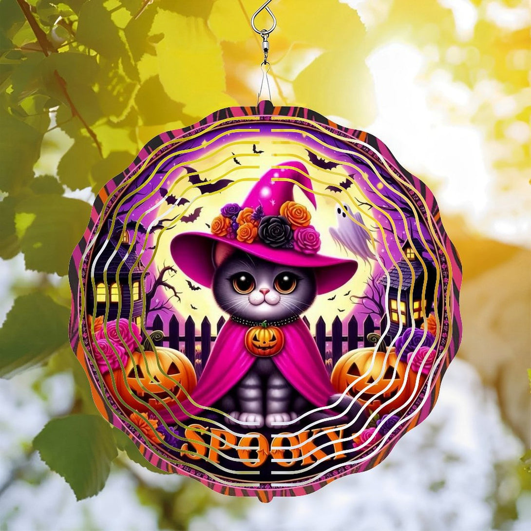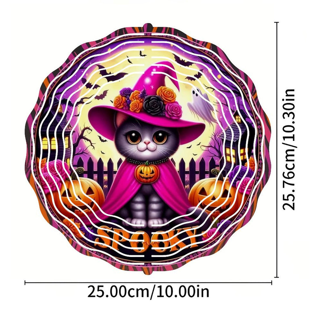 ,Round Spooky Pink Cat Halloween Wind Chimes Witch Kitty Round Jack O Lantern Cat Decor Wind Chimes for Homes, Bars, Offices, Man Caves, Garages, And Living Rooms .Also Makes A Great Gift.,10*10in(25*25cm)