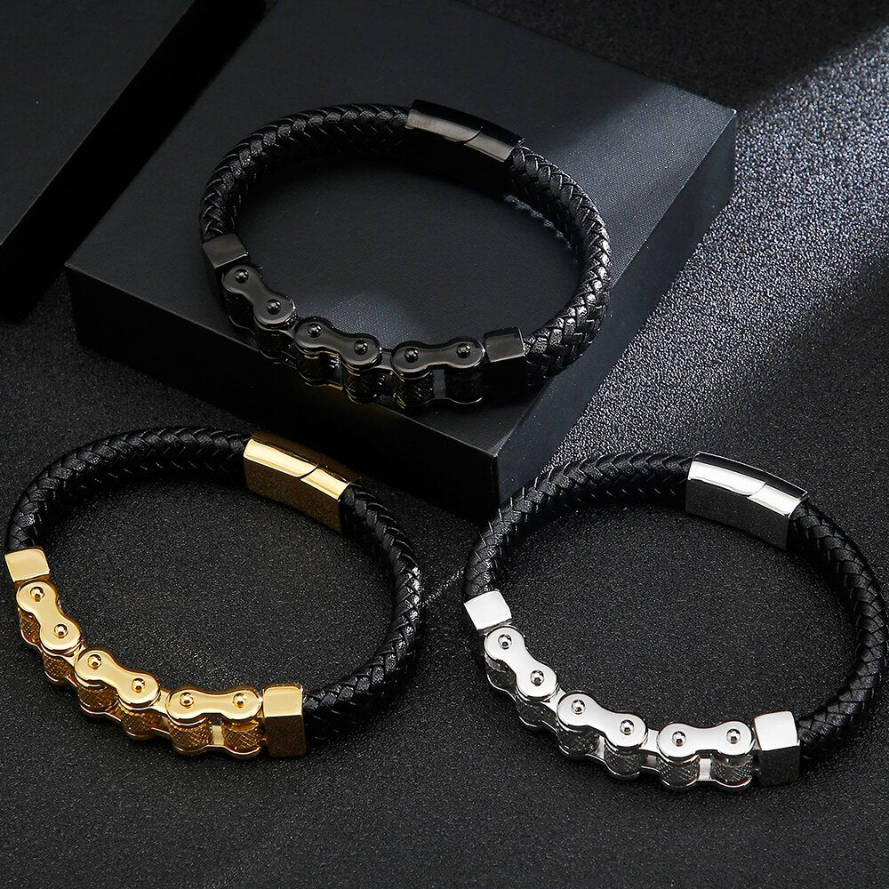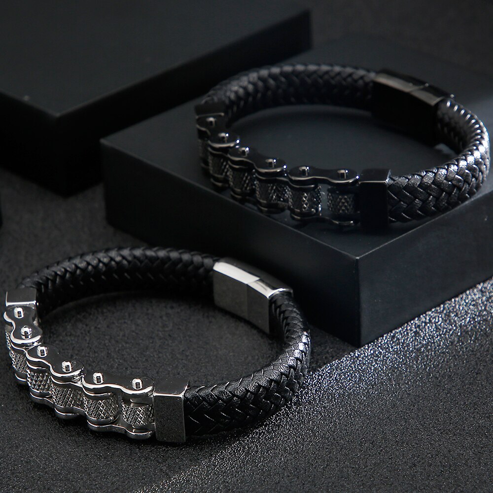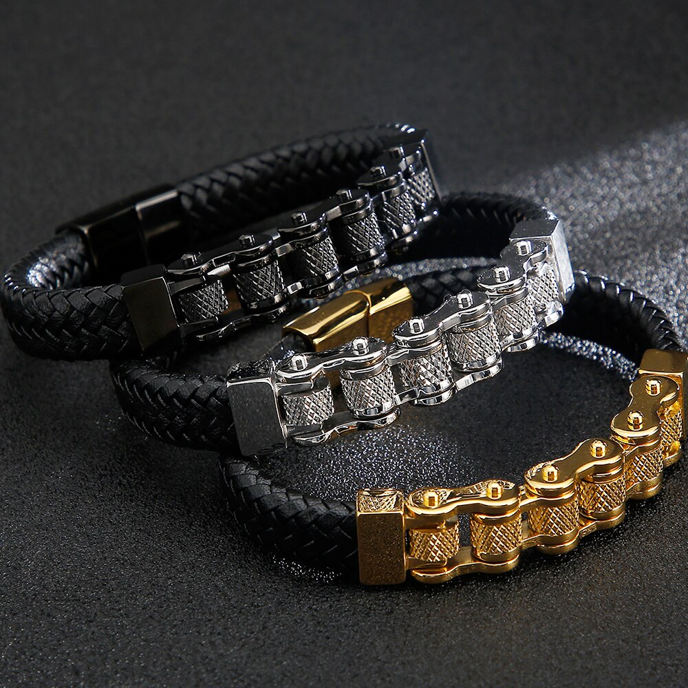 Pulsera de cuero genuino para hombre, cadena de eslabones de motocicleta de 12 mm, pulseras para hombre