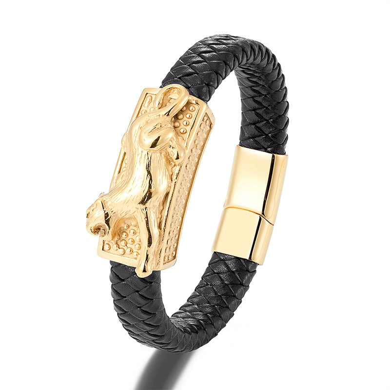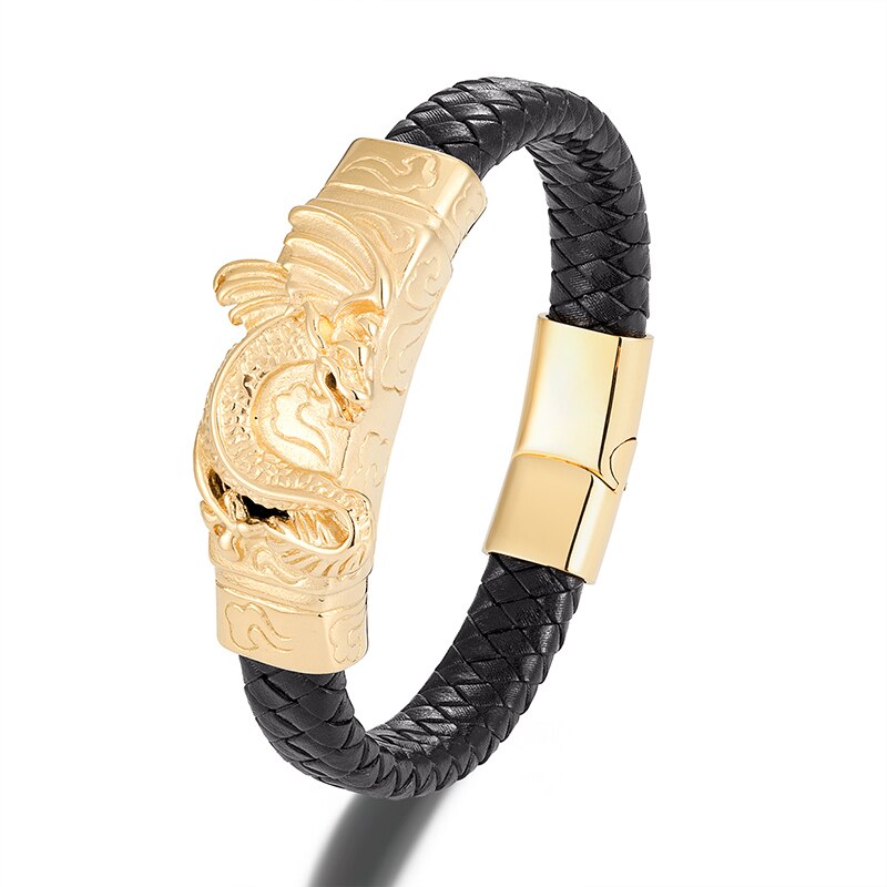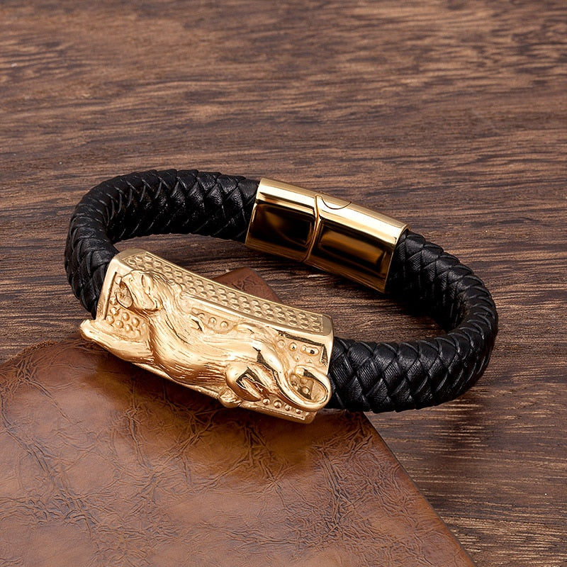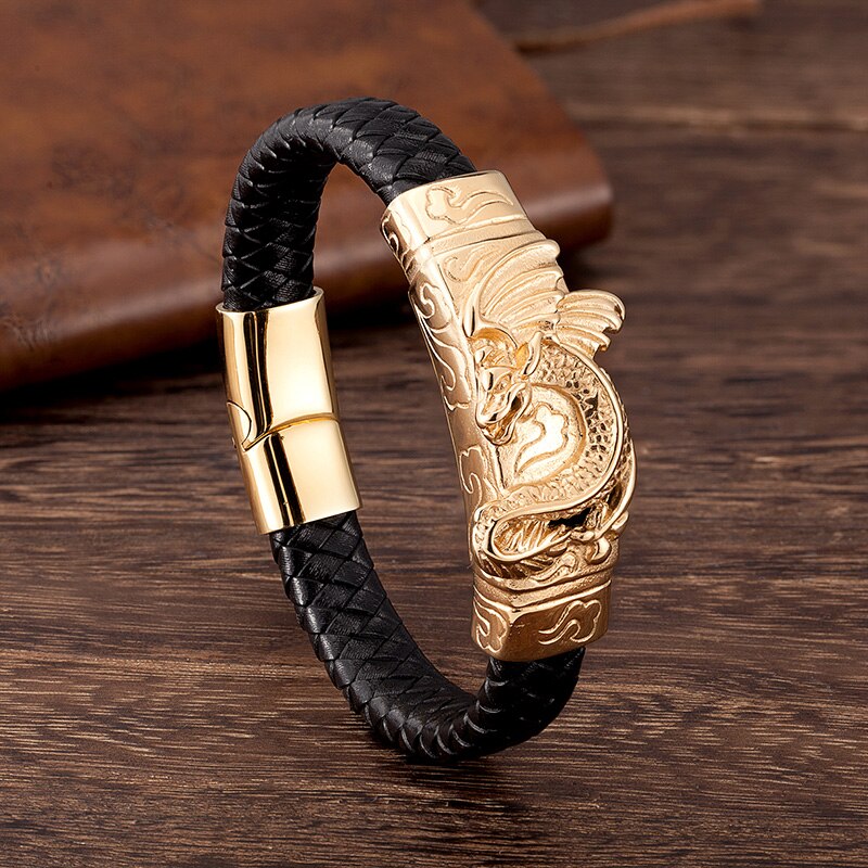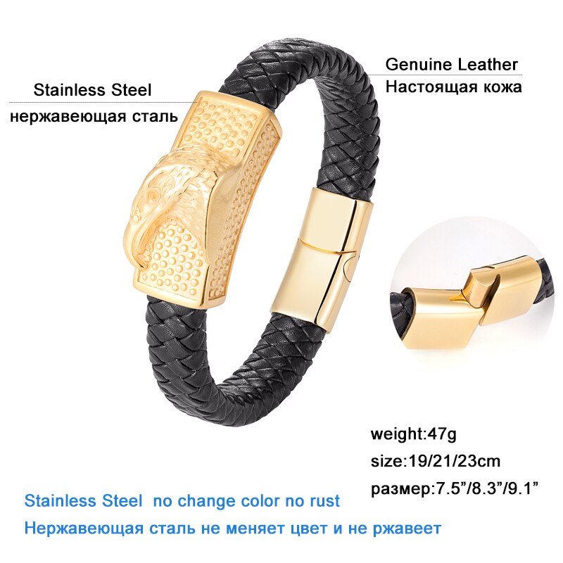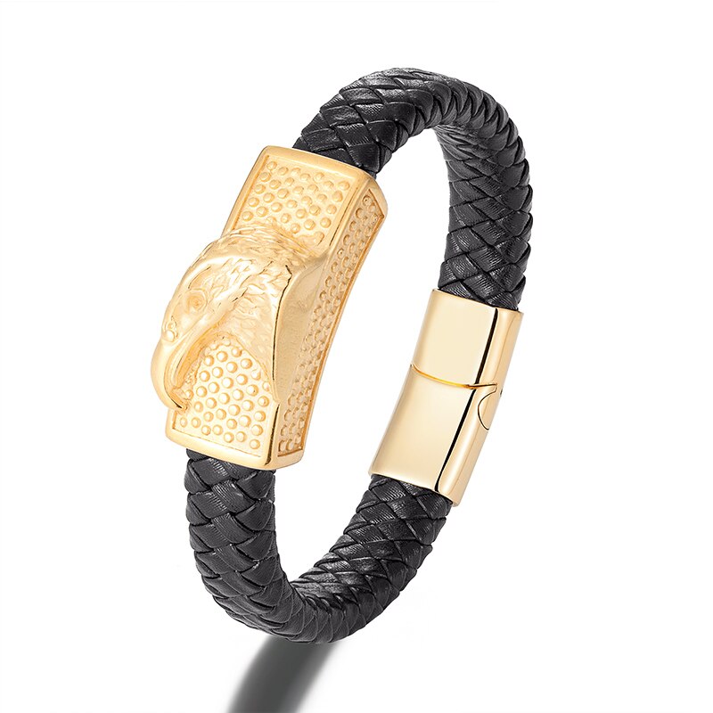 Pulsera de cuero genuino, pulsera de color dorado, pulsera de lujo, pulsera de acero inoxidable, joyería, pulsera de hombre, pulsera punk, pulsera de cuerda de mano, pulsera de dijes,