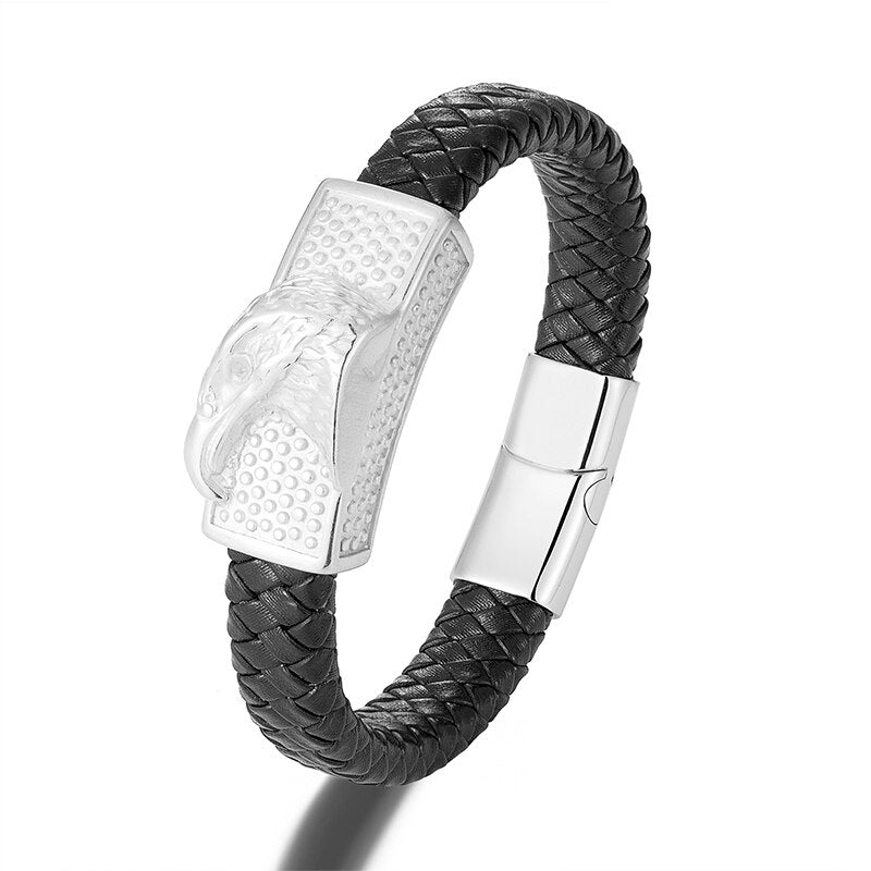 Inglés:Producto: Pulsera de cuerda de mano punk para hombreMaterial: Cuero genuino/acero inoxidableGénero: Hombre/Masculino/Niños/HombreAlta calidad: Nunca se decolora/Ecológico/AntialérgicoTamaño: 19 cm 21 cm 23 cmEnvío directo: servicio aceptadoPedido al por mayor: contáctenos para obtener más detalles