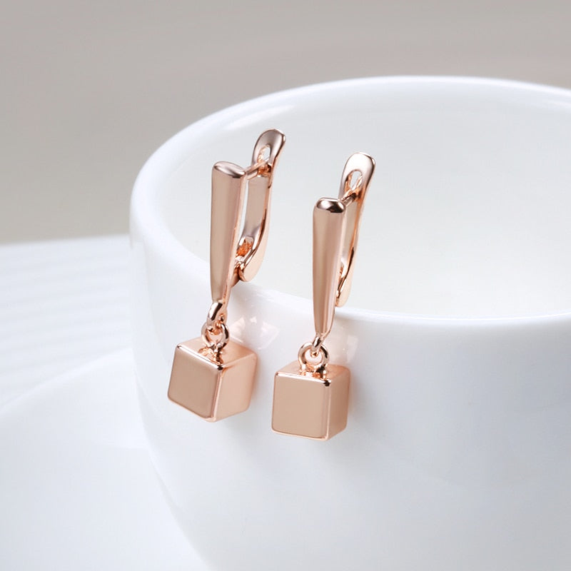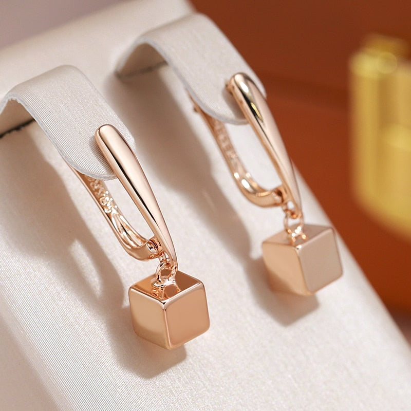 Pendientes colgantes cuadrados geométricos de oro 585 para mujer, joyería de moda de color oro 585 para uso diario, accesorios de fiesta para niñas.