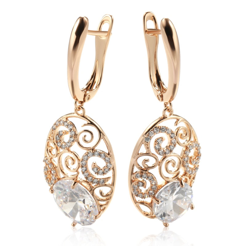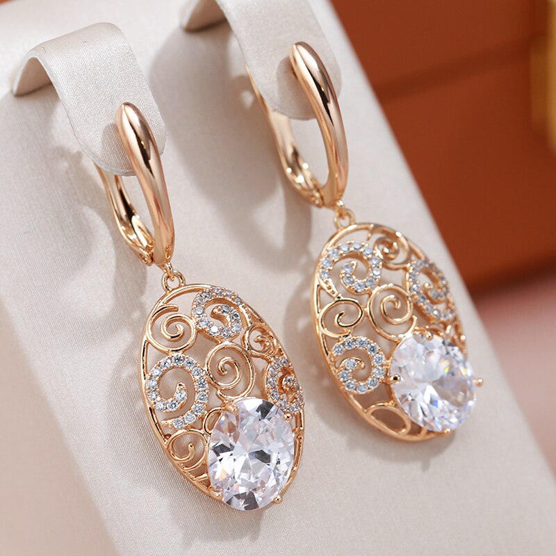Pendientes colgantes de circonita con textura geométrica de oro 585 para mujer, joyería vintage para bodas, pendientes de lujo en oro rosa 585.