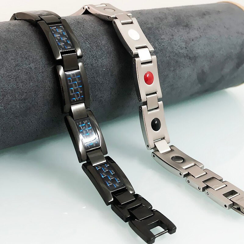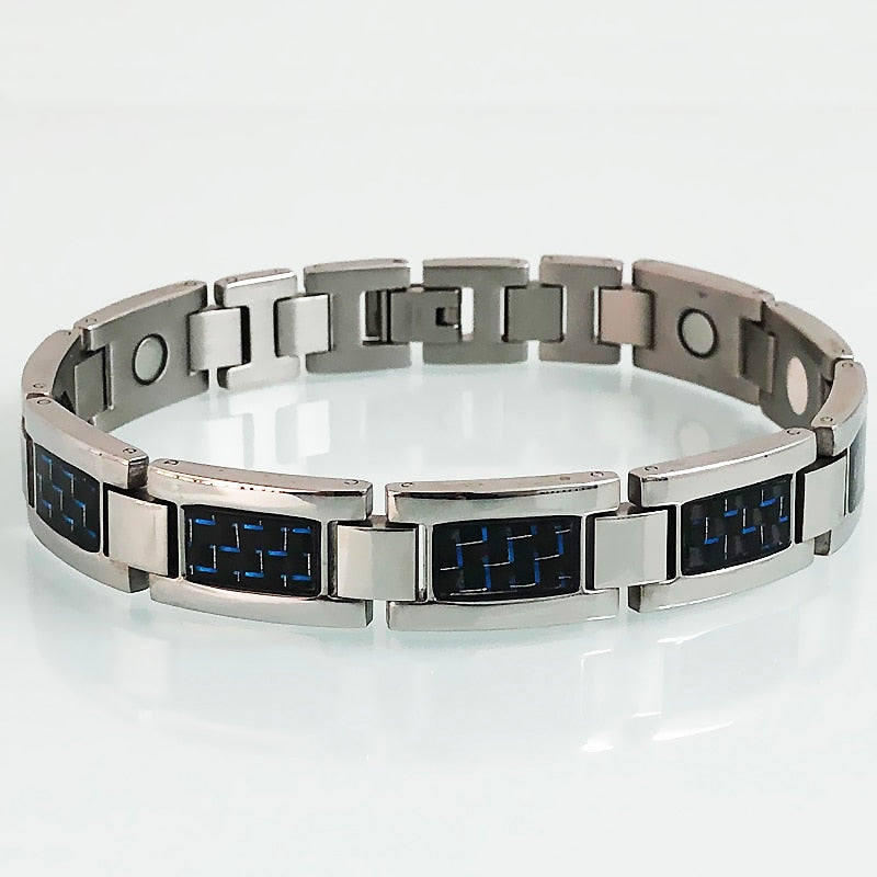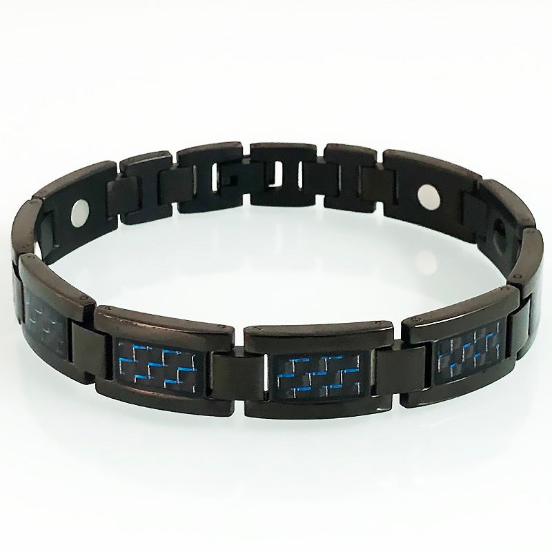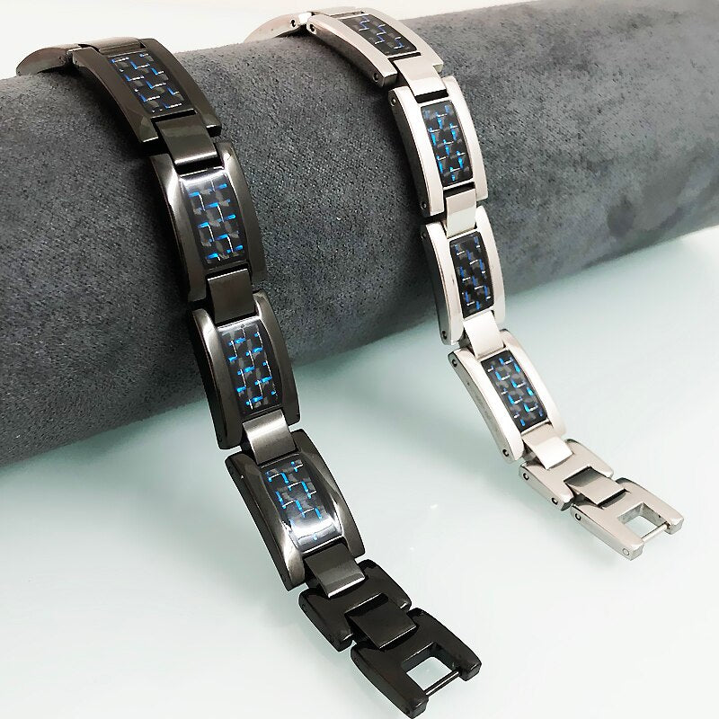 Pulseras magnéticas de germanio, energía, salud, bio, para hombre, fibra de carbono azul, cadena de acero y titanio, brazalete para hombre, joyería.