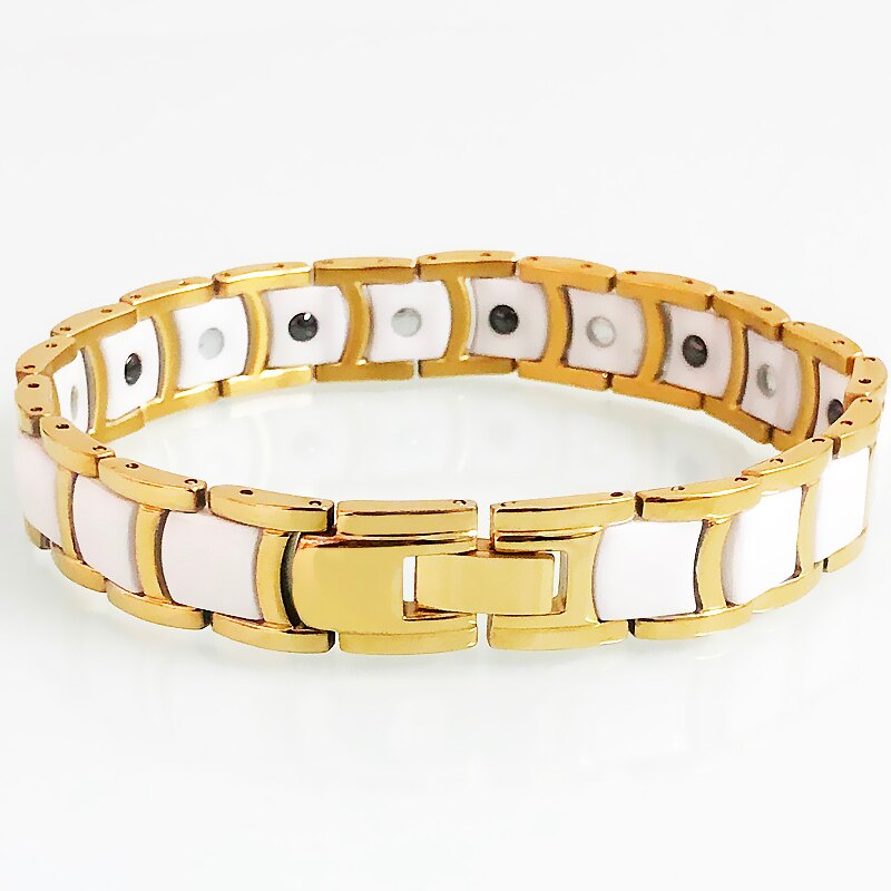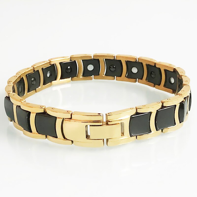 Pulsera magnética de germanio para hombre, color negro y blanco, de cerámica, de acero inoxidable, color dorado, accesorios de joyería.