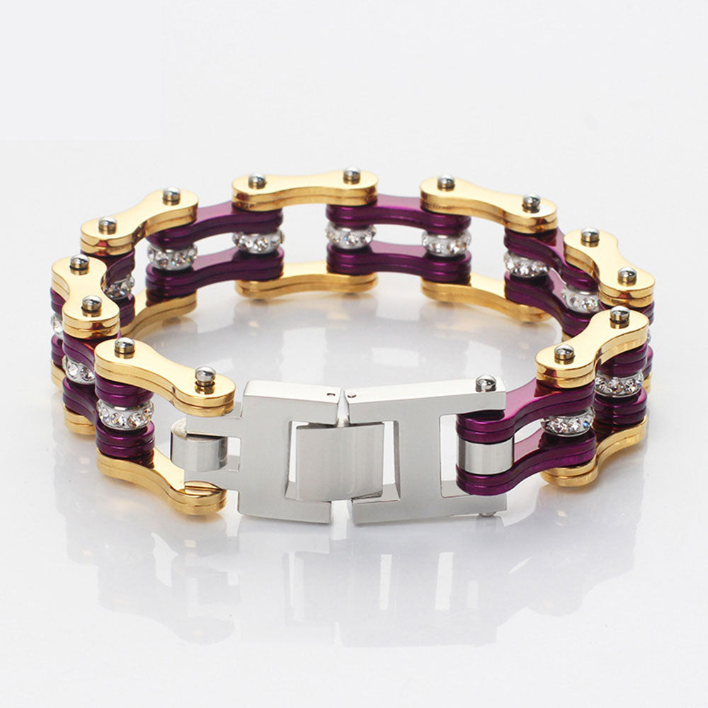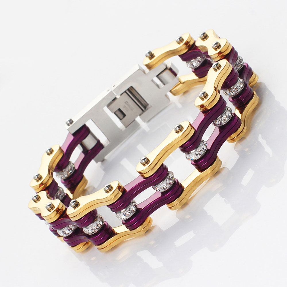 Pulseras de cadena de eslabones de motocicleta y bicicleta doradas para hombre y mujer
