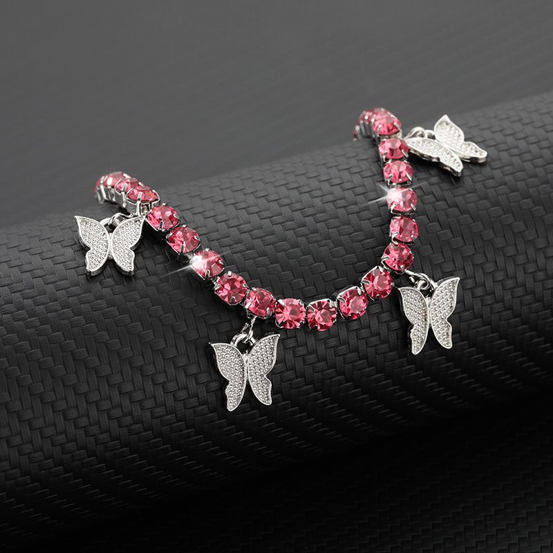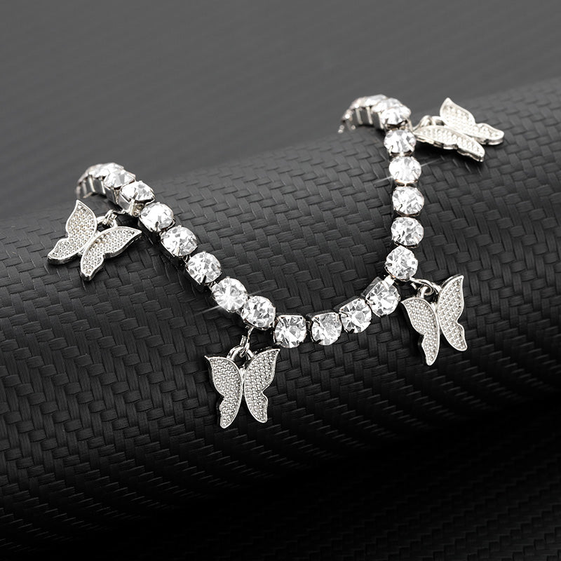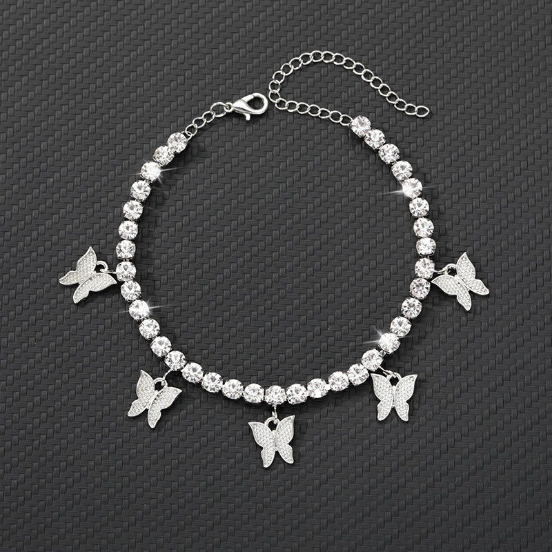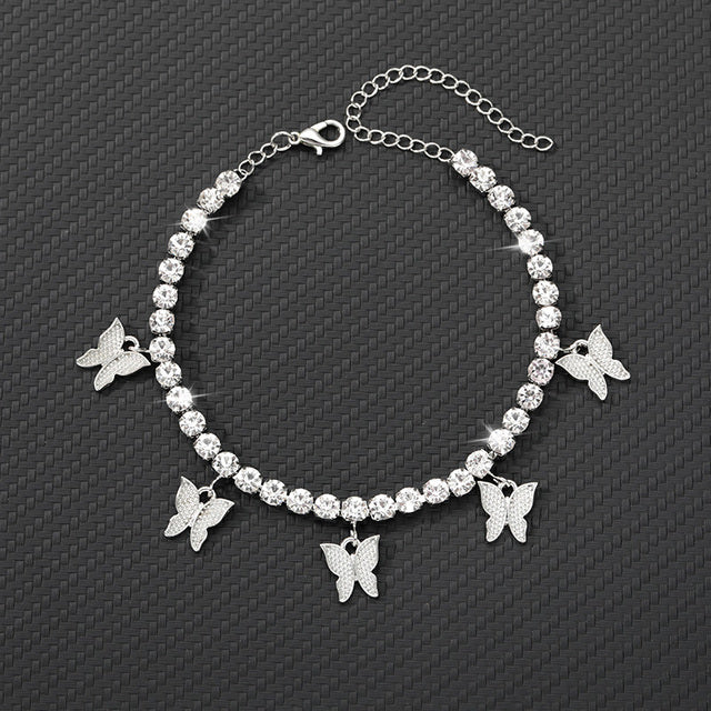Tobilleras - Tobillera de mariposa dorada con cristales de imitación, tobilleras bohemias para playa, sandalias, pulseras para pies, joyería femenina