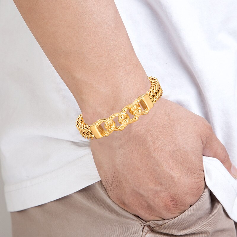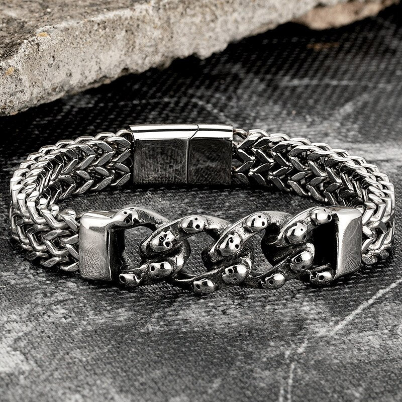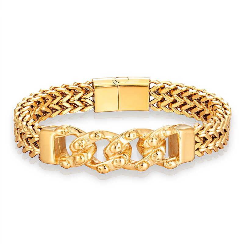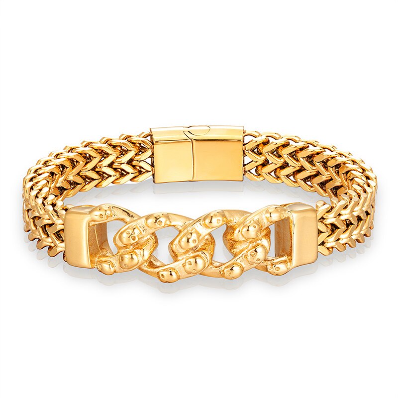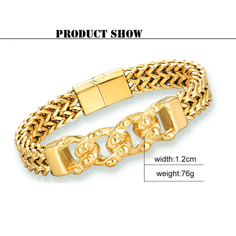 Pulsera de acero inoxidable con cadena dorada y calavera para hombre, accesorios punk, pulsera magnética de moda, joyería al por mayor, regalos para novios.