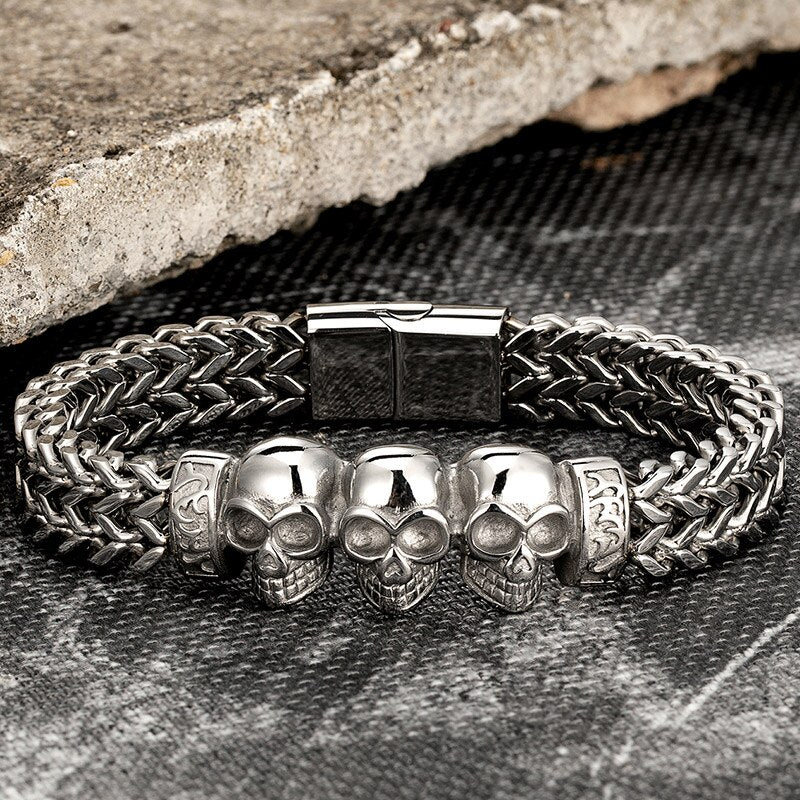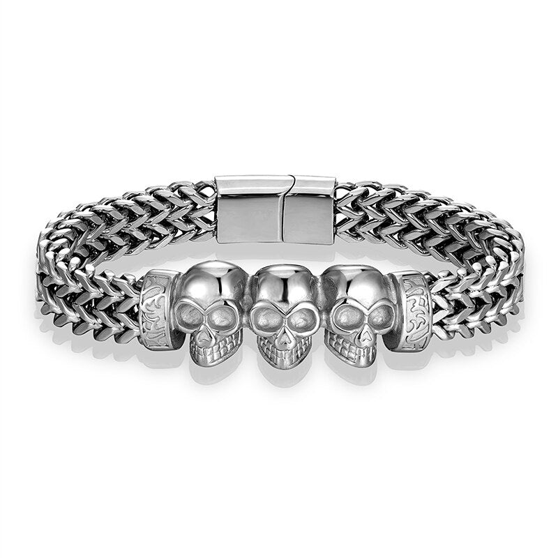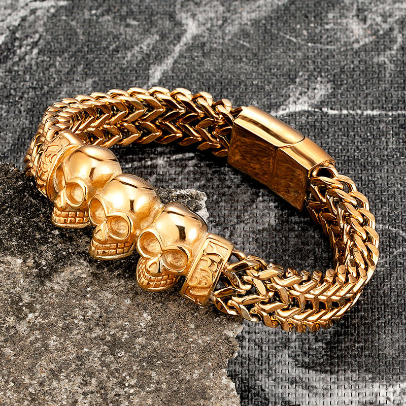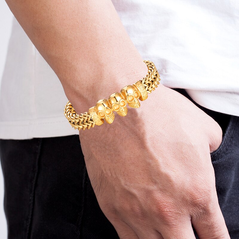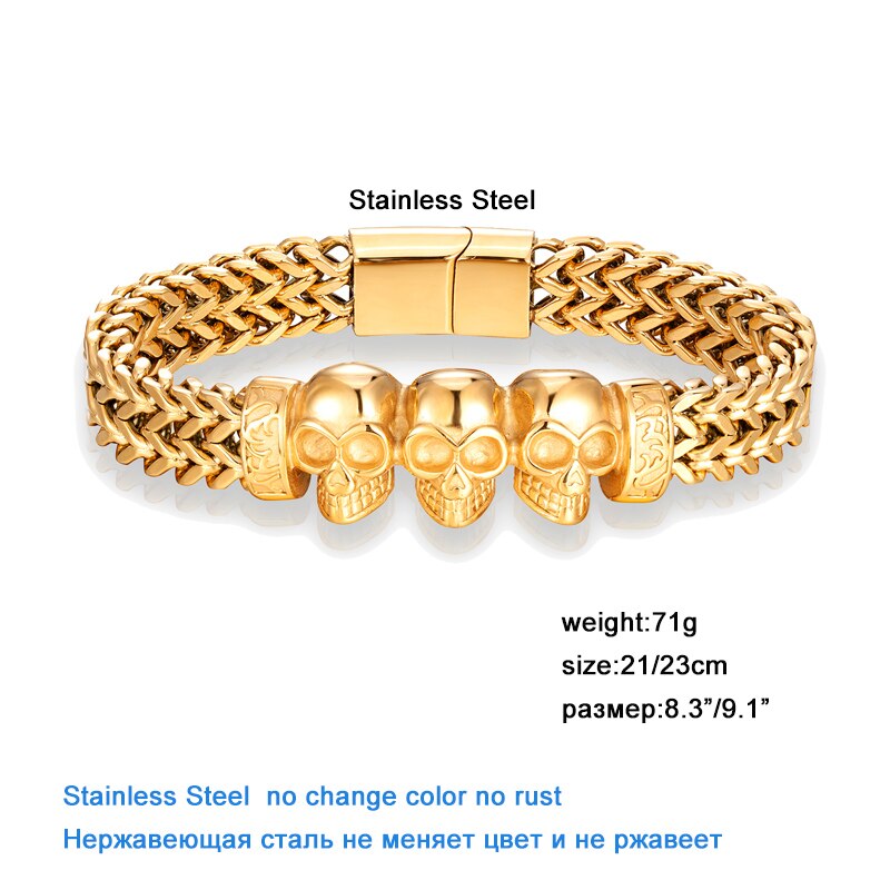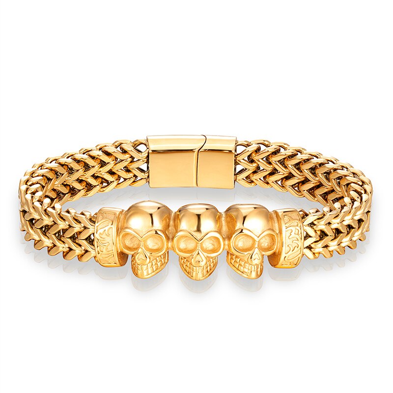 Pulsera de cadena de oro, pulsera de acero inoxidable, pulsera para hombre, pulsera de calavera, pulsera punk, pulsera de mano, accesorios para hombre, pulsera magnética, pulsera de moda, pulsera para hombre, joyería para hombre, pulsera al por mayor, pulsera para amigo, pulsera de regalo