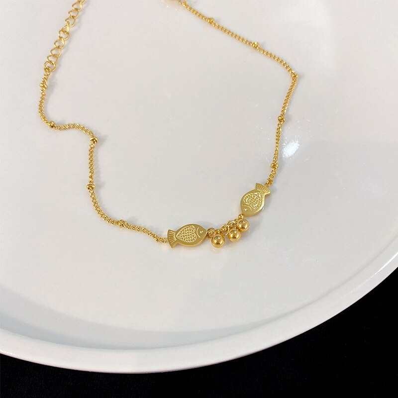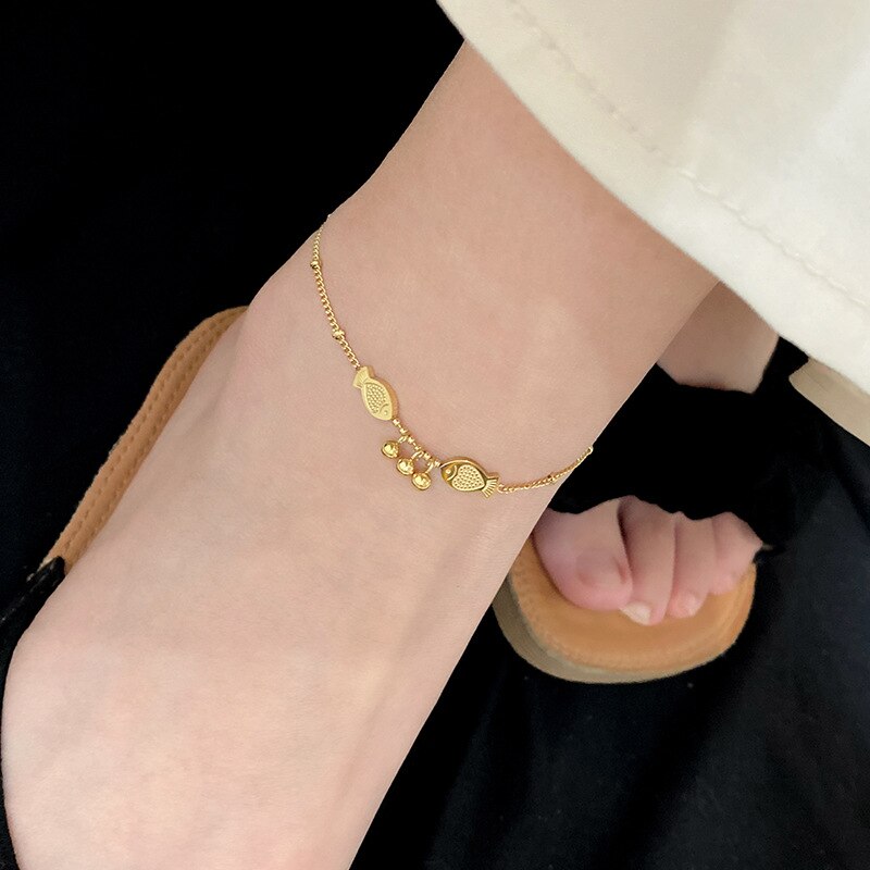 Pulsera tobillera con colgante de pez y bola bohemia de color dorado para mujer