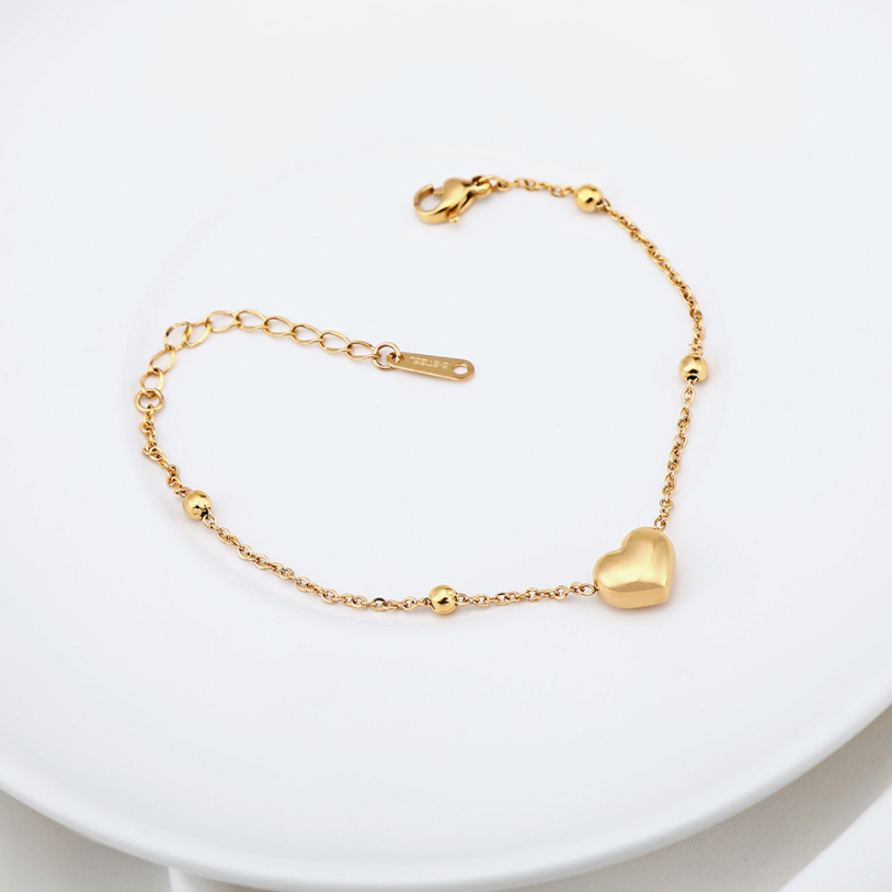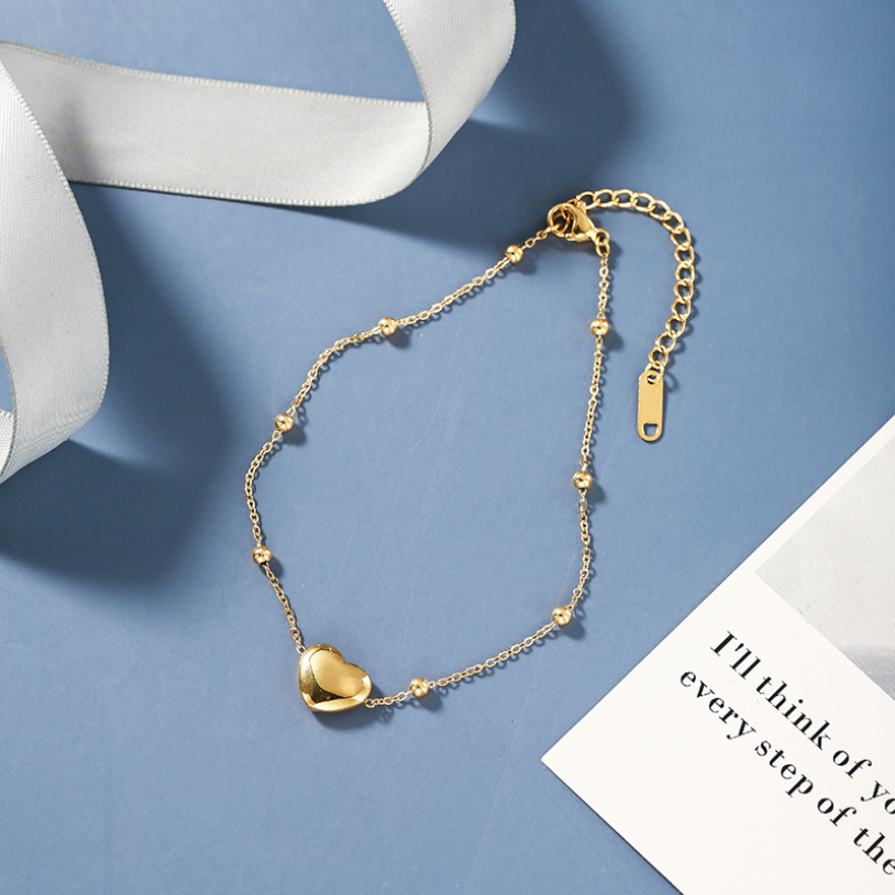 Tobilleras con cuentas de corazón fijas y antideslizantes de color dorado para mujer