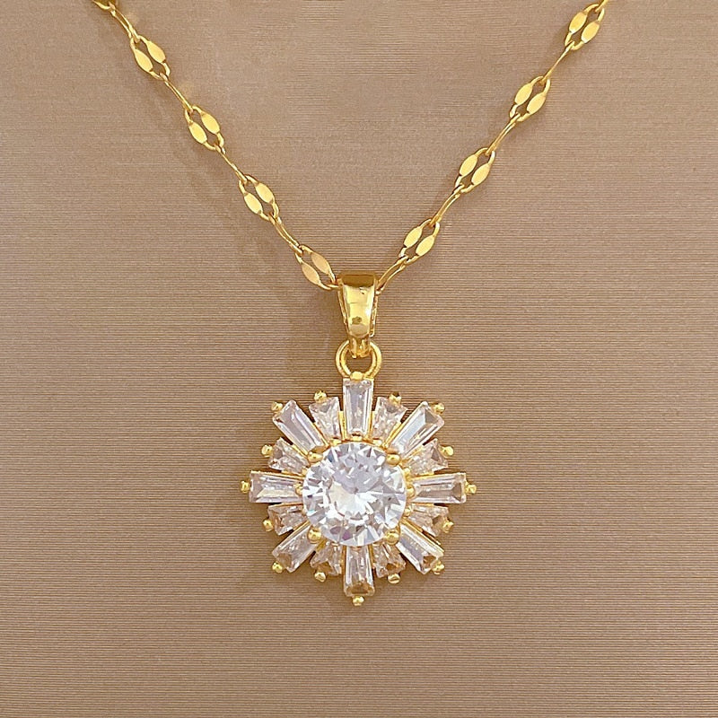 Collar con colgante de flor de copo de nieve de cristal dorado de acero inoxidable 316L, joyería de oro 585, temperamento sexy para mujer, cadena de clavícula.