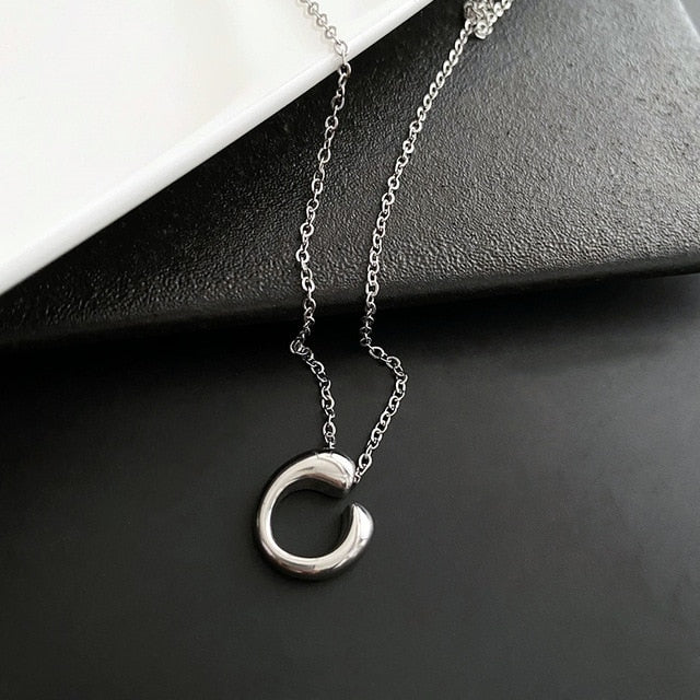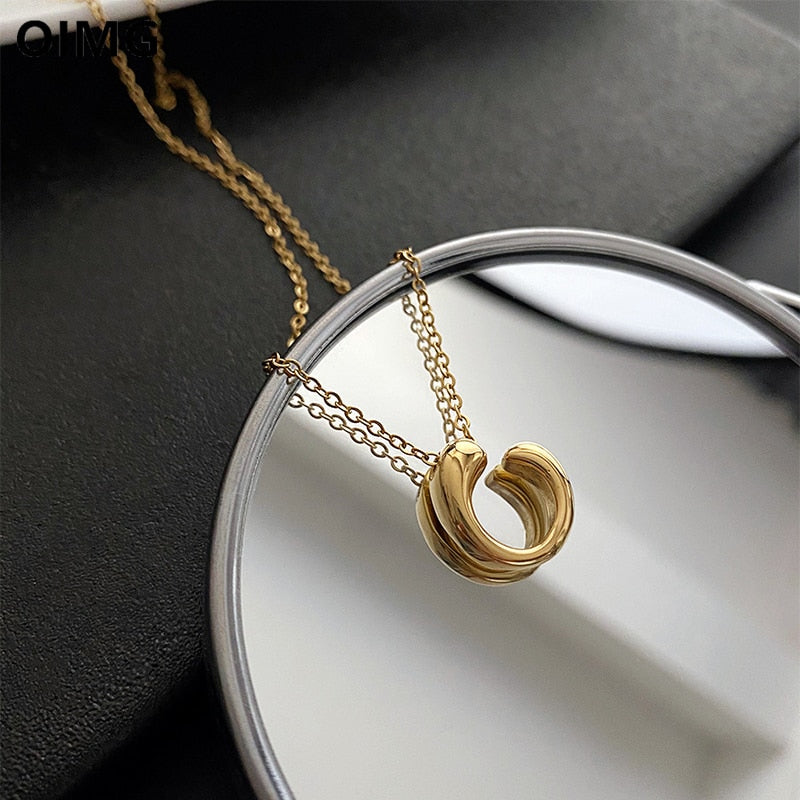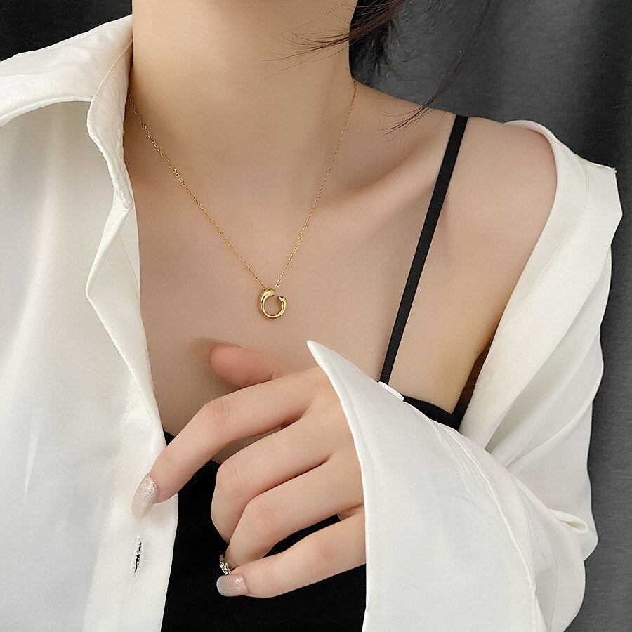Collar con colgante redondo irregular simple coreano de acero inoxidable 316L, color dorado, joyería hipoalergénica, sin óxido, 585