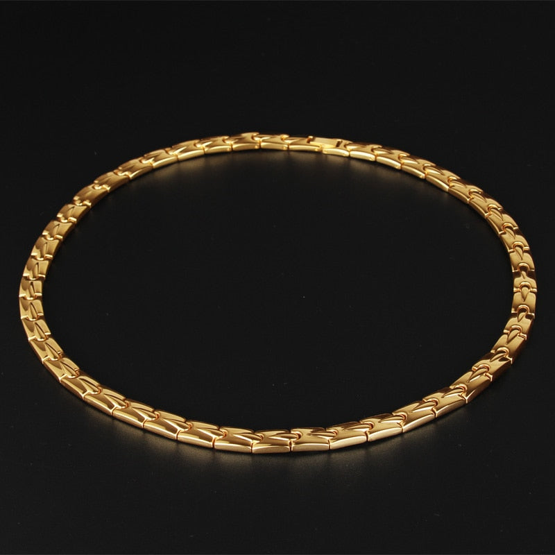Collar de cadena larga de acero inoxidable color dorado para hombres y mujeres, gargantilla magnética con beneficios energéticos para la salud, joyería para hombre.