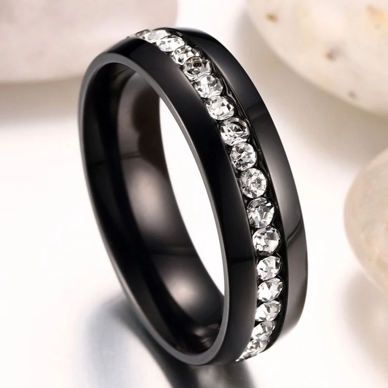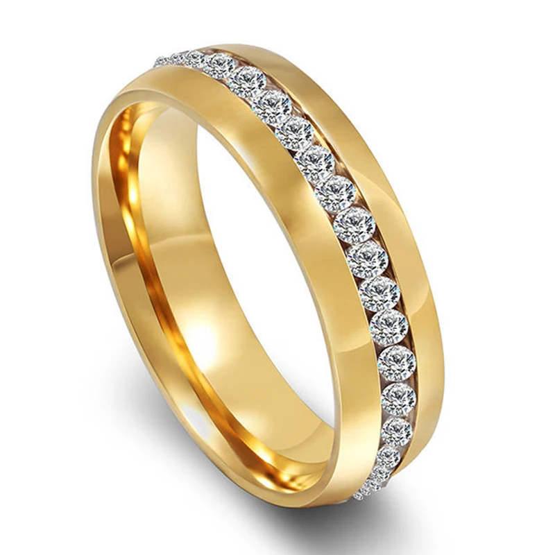 Anillos de compromiso de acero inoxidable color dorado, hecho a mano, con circonita cúbica de 6 mm.