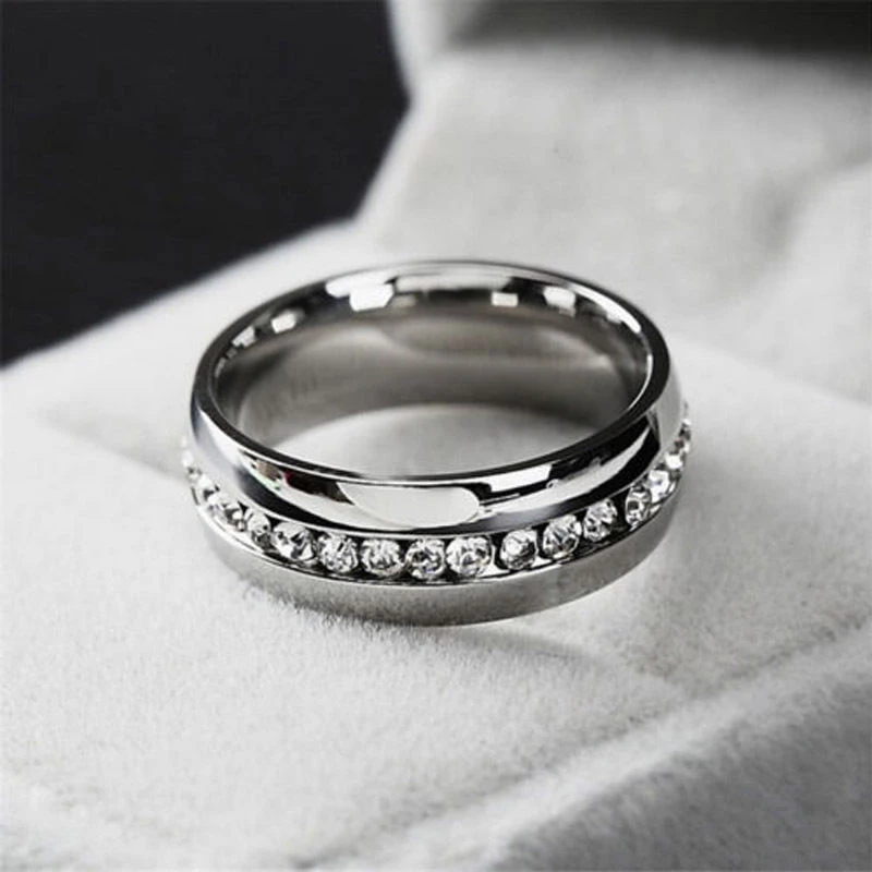 Anillo de compromiso de boda de acero inoxidable color dorado con cristal de circonita cúbica.