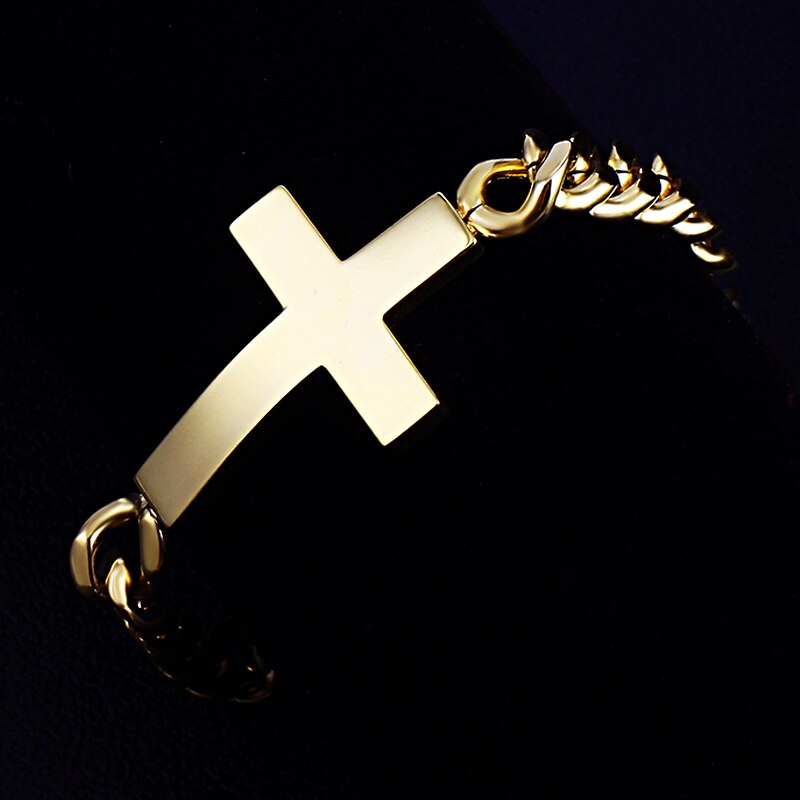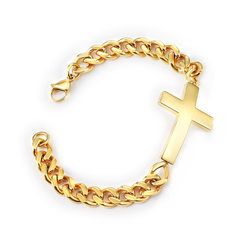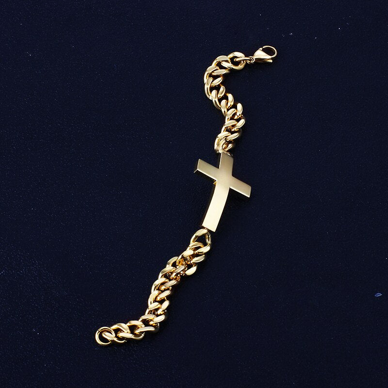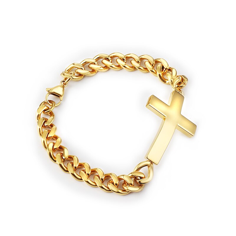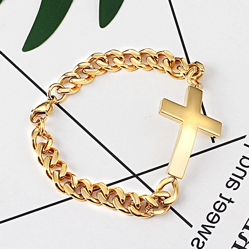 Pulsera cubana de eslabones dorados con cadena cruzada para hombres y mujeres, acero inoxidable 316L, accesorios de joyería resistentes a la decoloración.