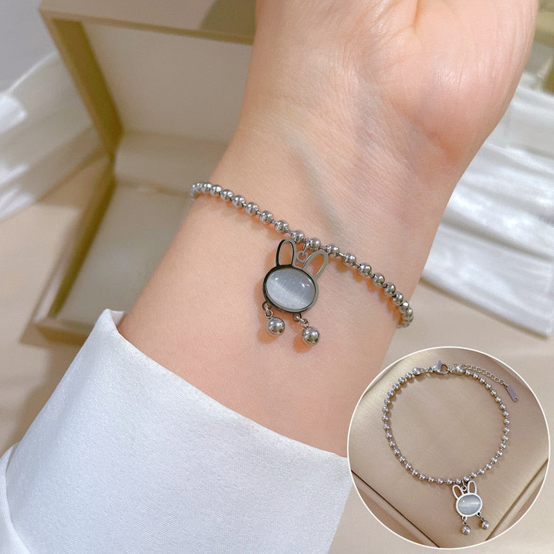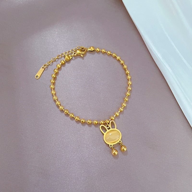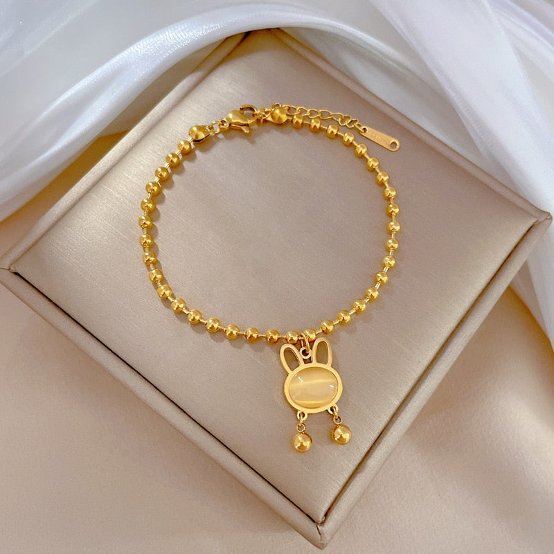 Pulsera de acero inoxidable 316L chapada en oro 585 con cuentas de ópalo de conejo, antioxidante, para mujer y niña, joyería que no se decolora.