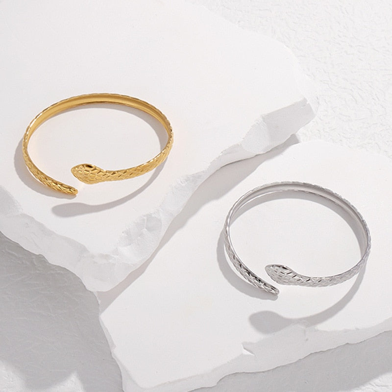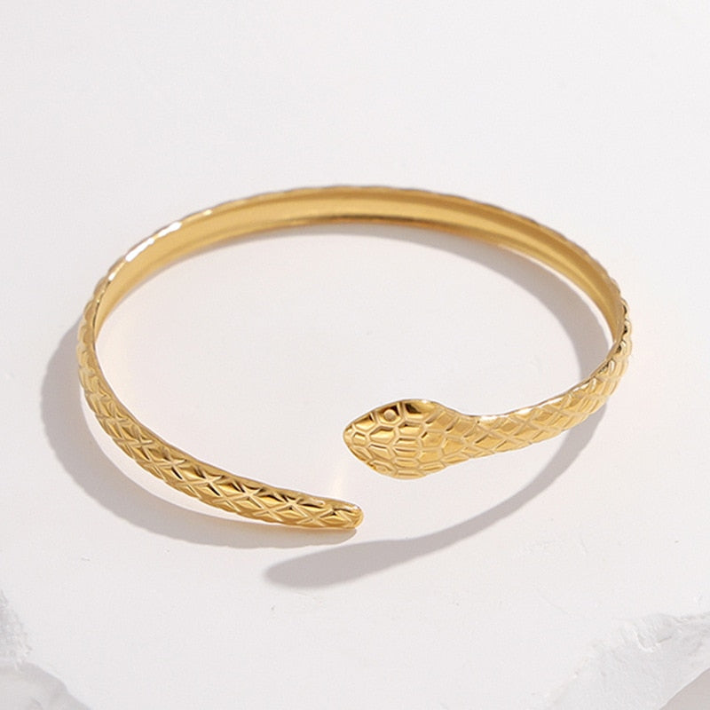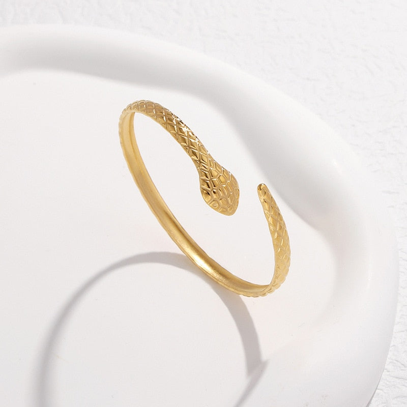 Pulsera de acero inoxidable 316L chapada en oro 585, estilo punk, con forma de serpiente, para mujer y niña.
