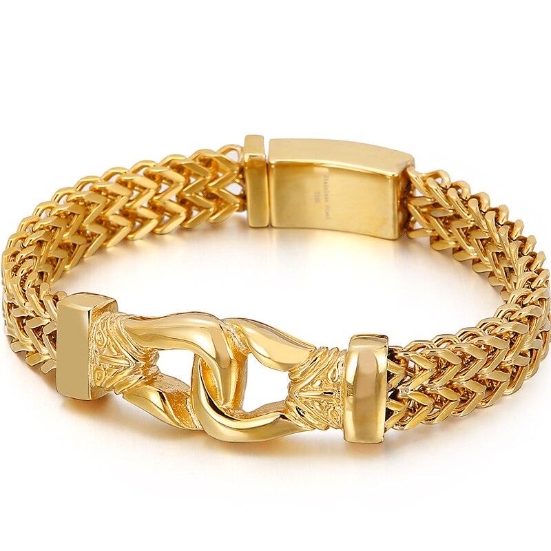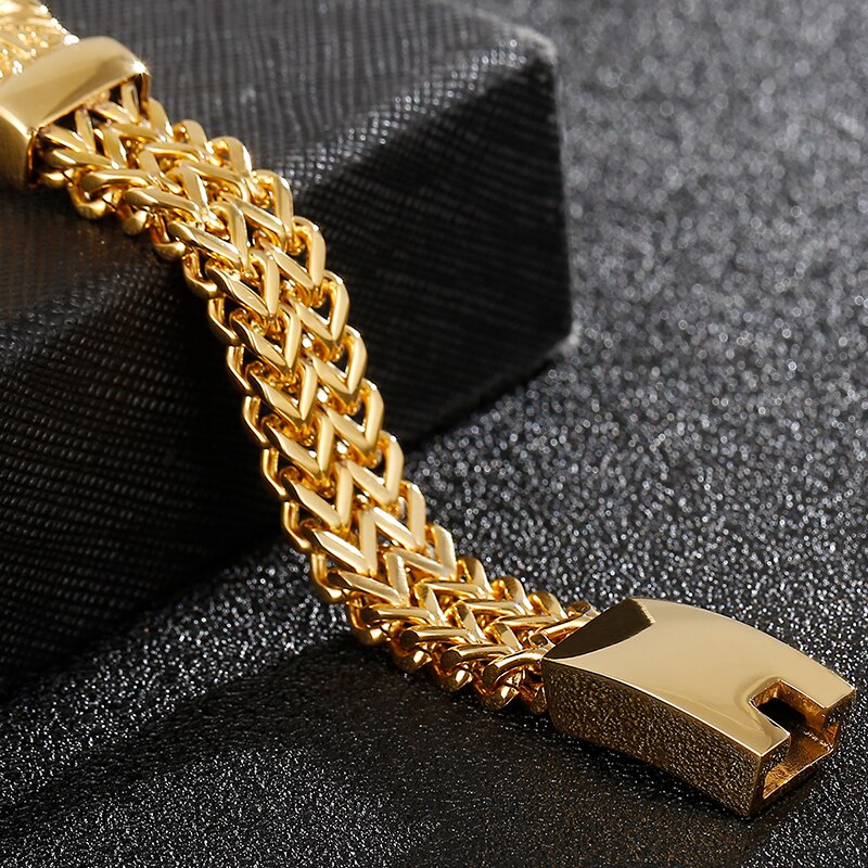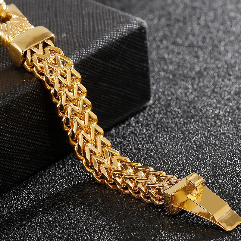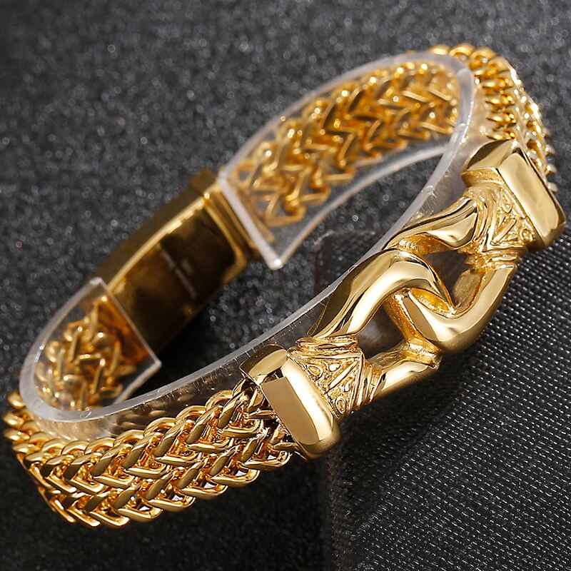 Pulsera de acero inoxidable chapada en oro de 11 mm para hombre, doble capa, con eslabones francos, cadena de eslabones, pulseras para hombre, joyería decorativa vikinga.