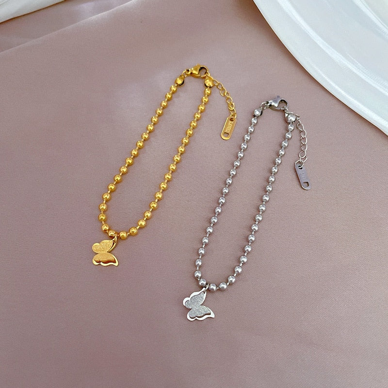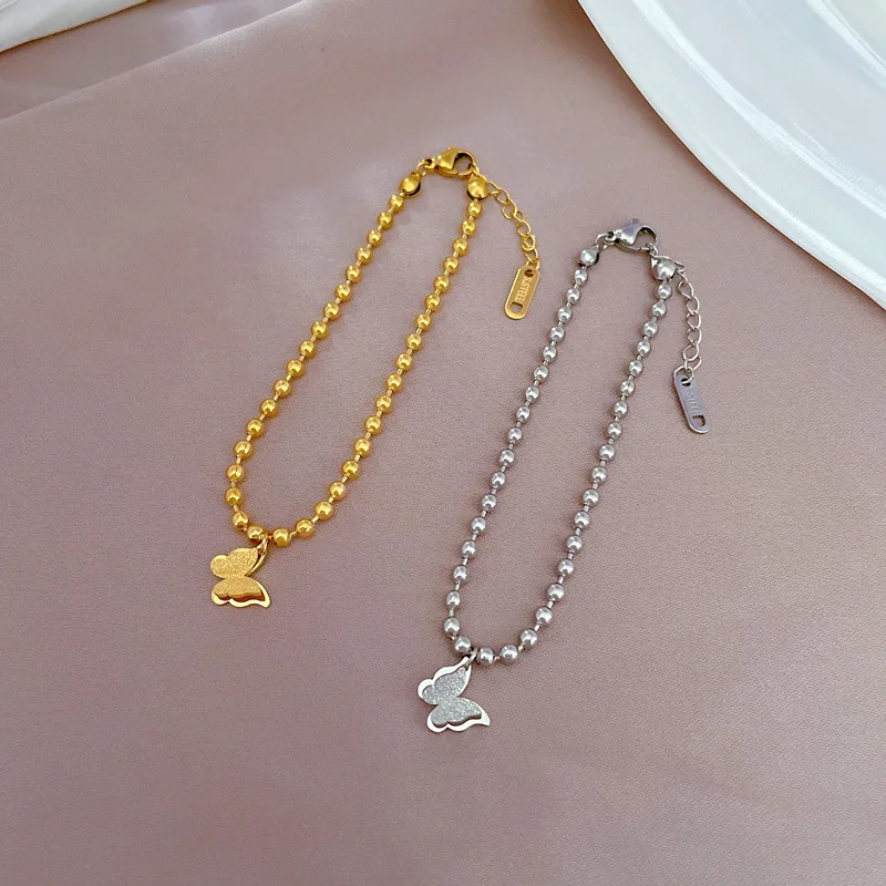 Pulsera chapada en oro, resistente al agua, con cadena de cuentas de mariposa y temperamento bonito para mujer