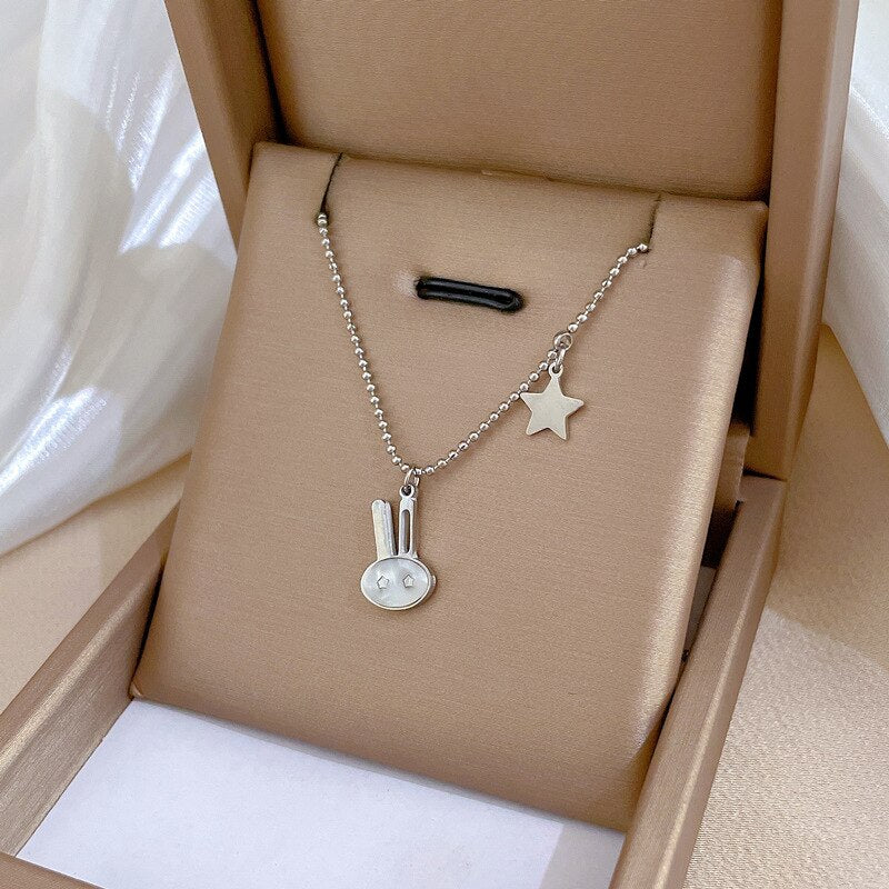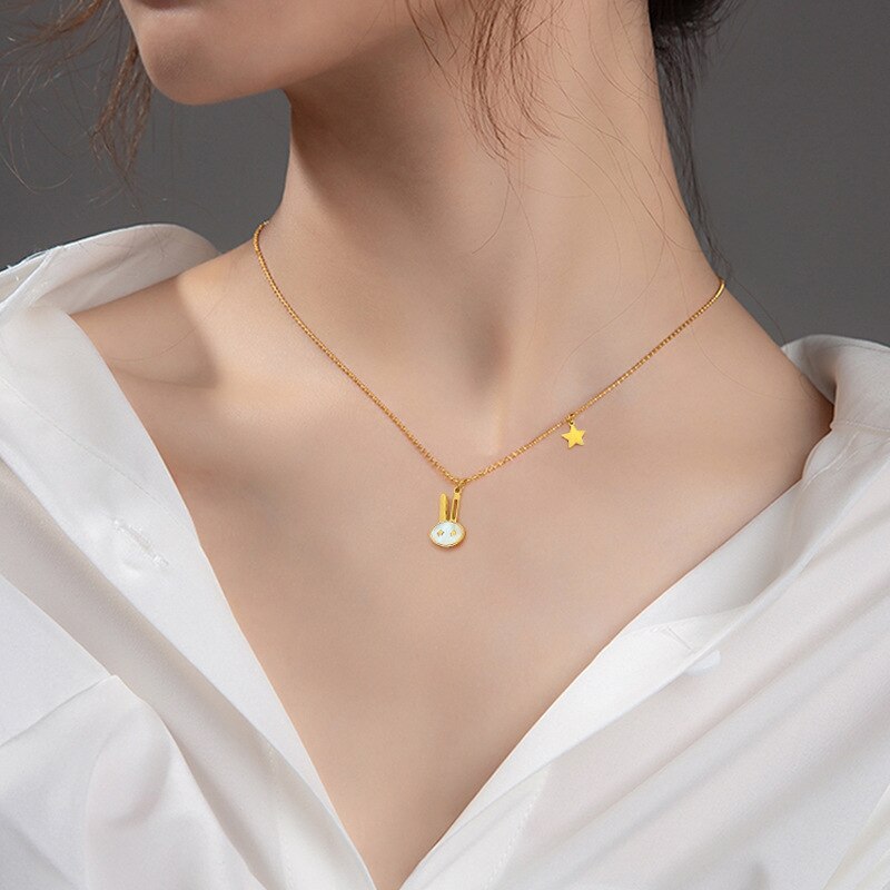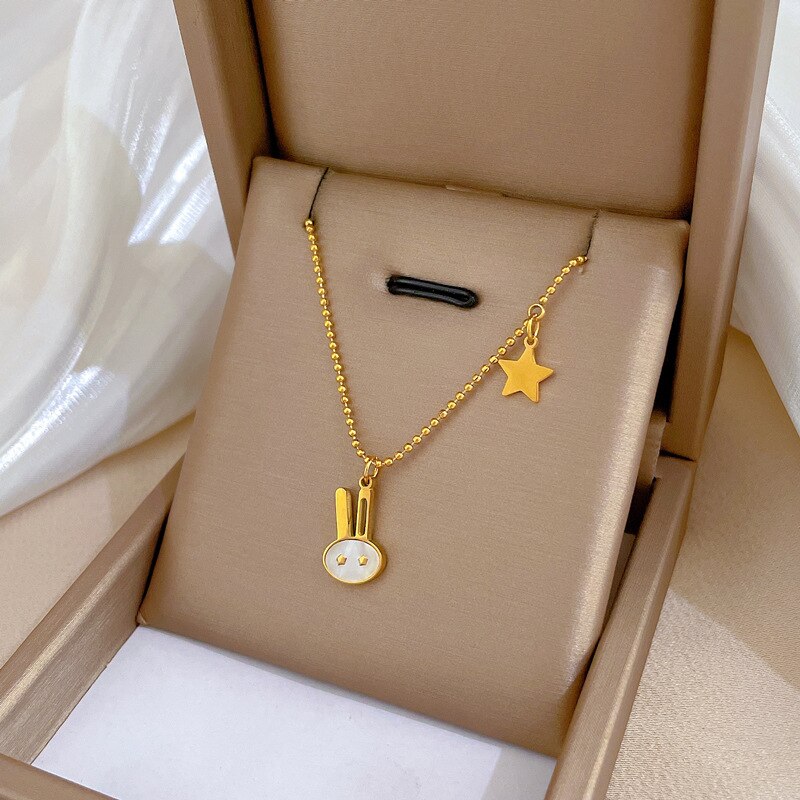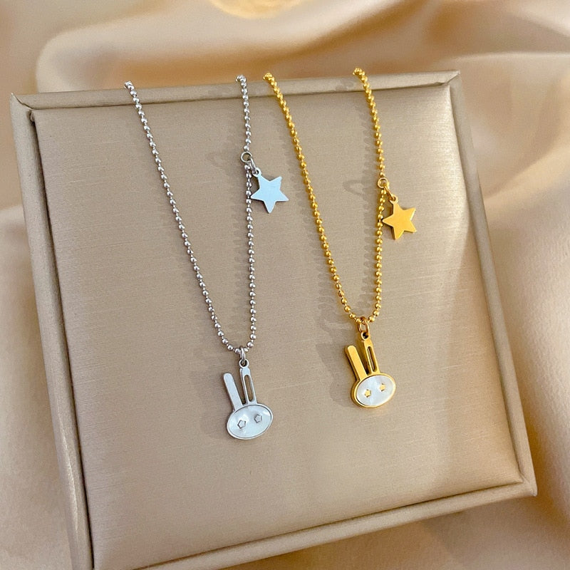 Collar con colgante de conejito clásico de concha natural, chapado en oro de acero titanio 585, joyería coreana para mujer, estilo gótico para fiesta.