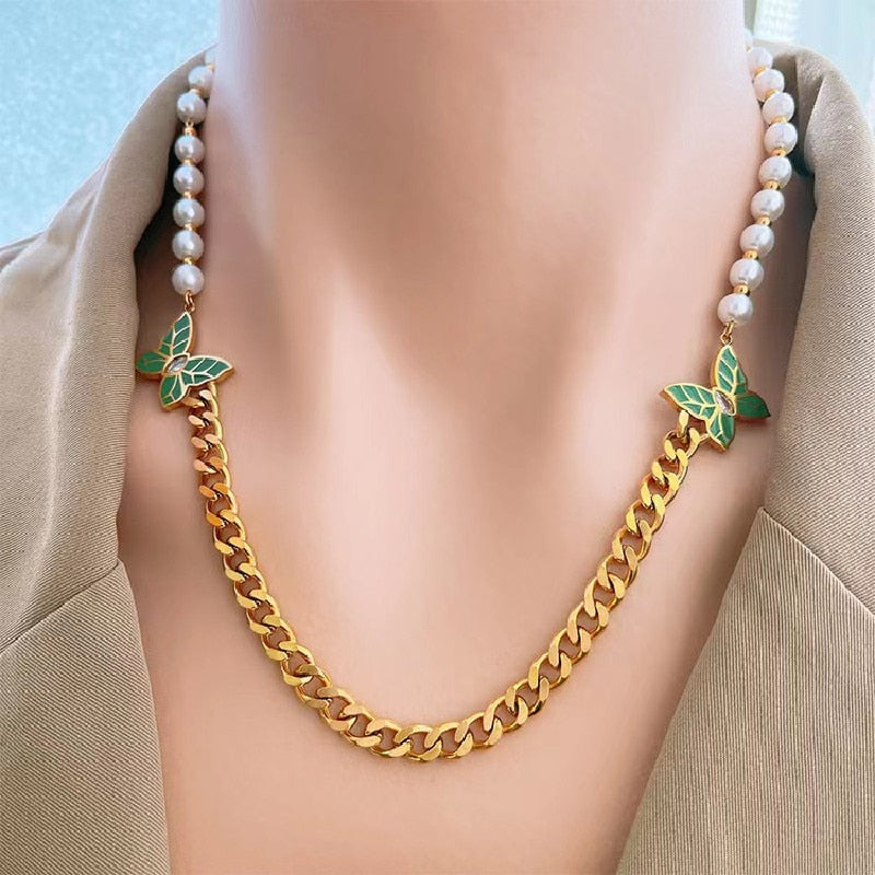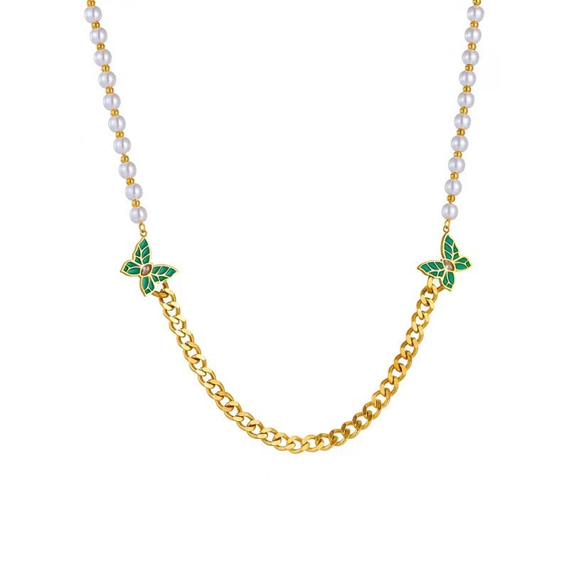Collar elegante de perlas de mariposa chapadas en oro 585, de acero inoxidable 316L, para mujer y niña, nuevo y moderno, joyería de lujo que no se decolora.