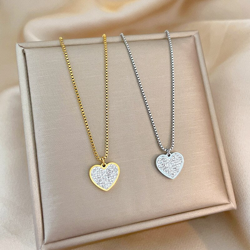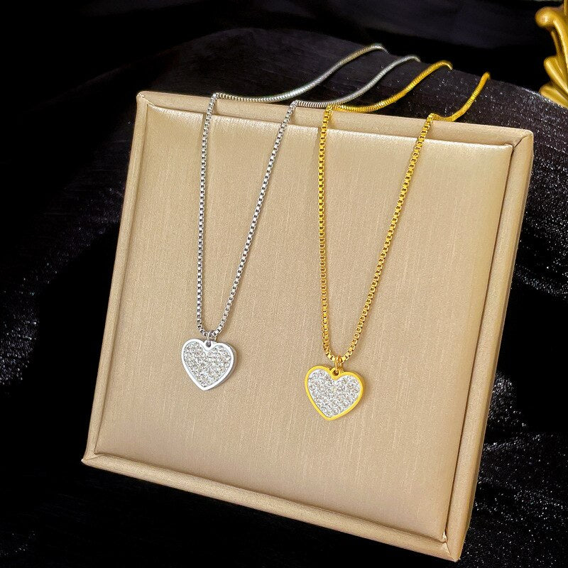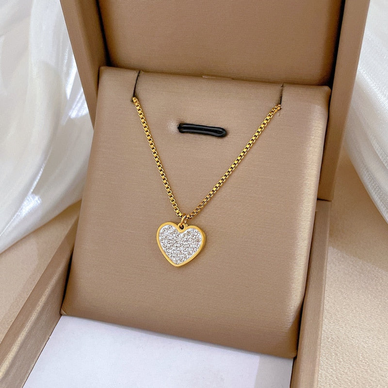 Collar con colgante de corazón de circonitas brillantes de moda chapado en oro de acero titanio 585 para mujer, joyería de temperamento súper llamativo.