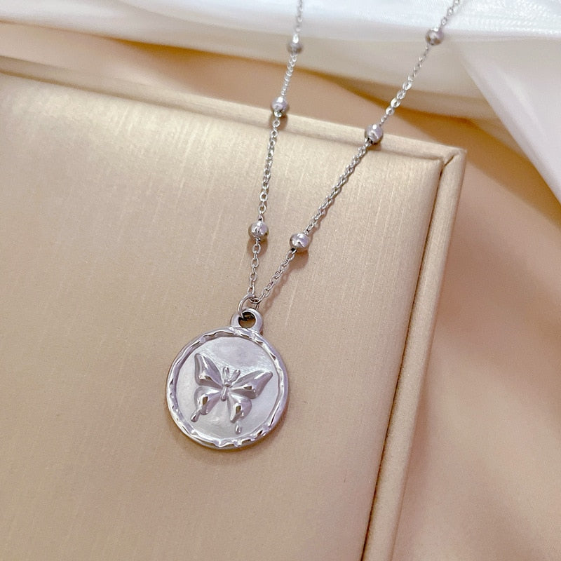 Collar con colgante de mariposa circular geométrica punk chapado en oro para mujer