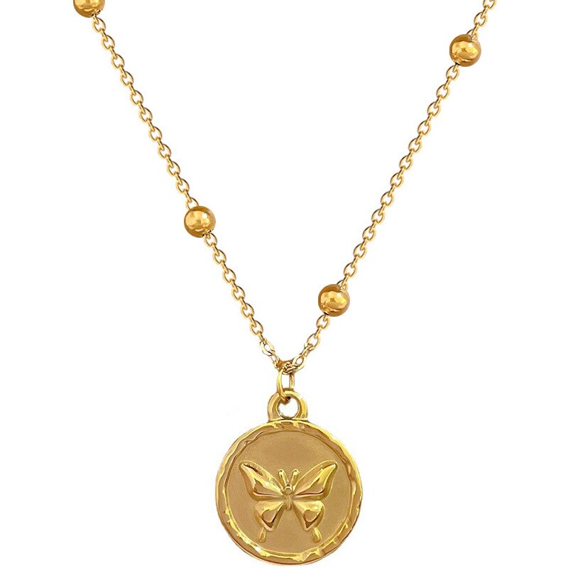 Collar con colgante de mariposa, círculo geométrico punk, de acero inoxidable 316L chapado en oro, joyería de oro 585 para mujeres y niñas.