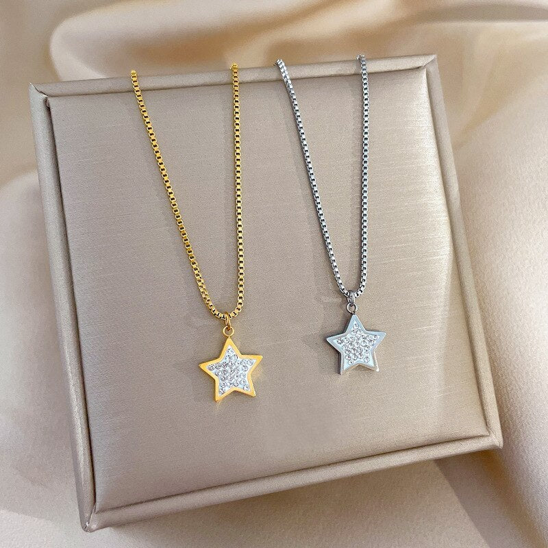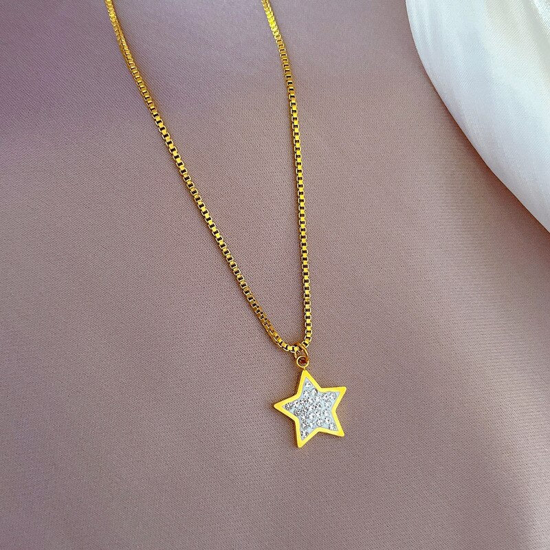Collar con colgante de estrella brillante coreana, chapado en oro de acero titanio 585, para mujer, cadena ligera de lujo.