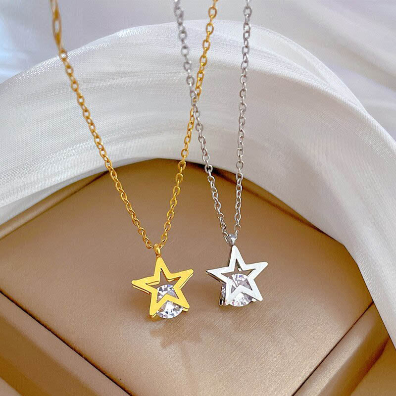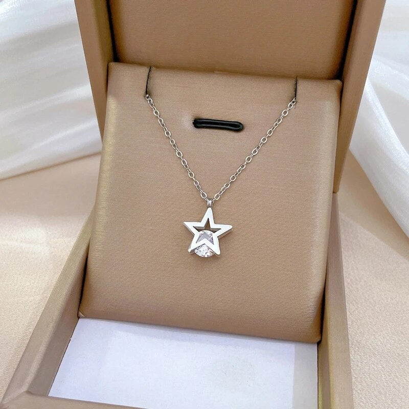 Collar con colgante de estrella romántica coreana chapado en oro para mujer