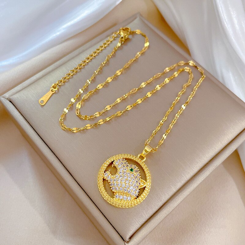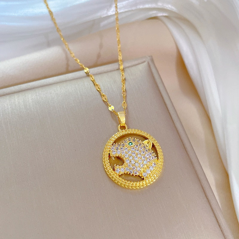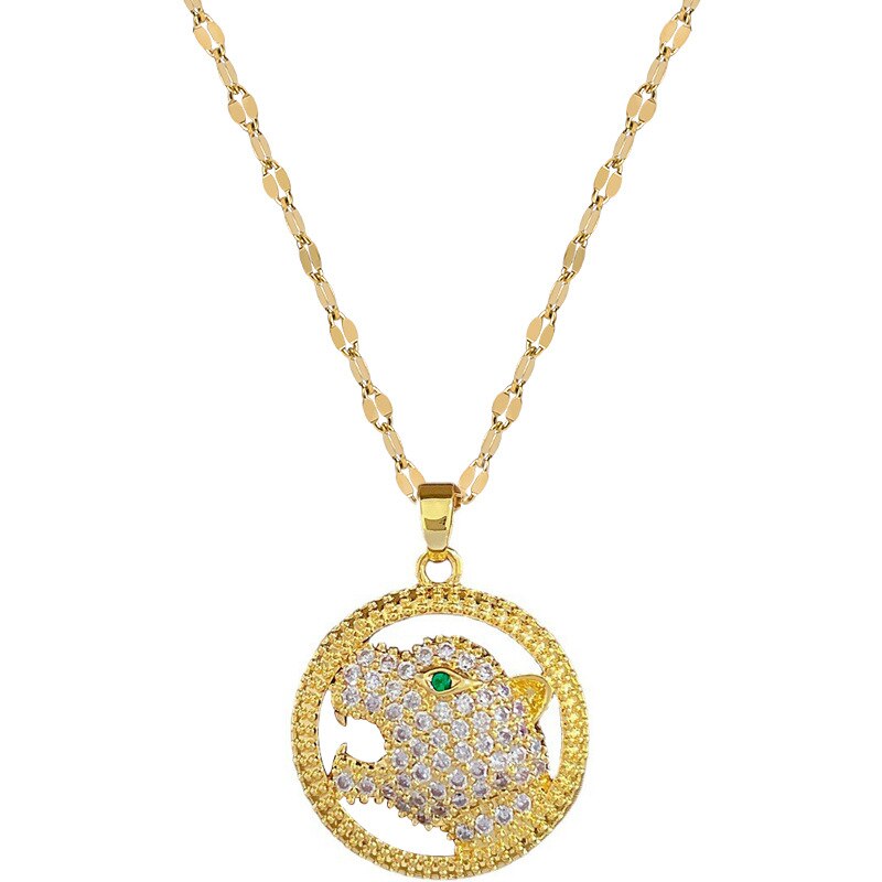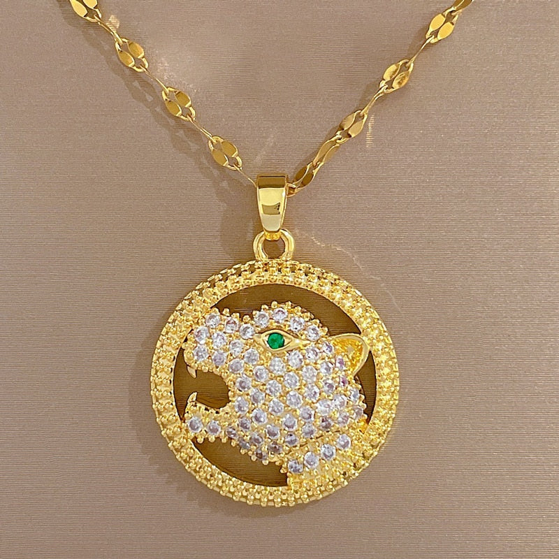 Collar de lujo con forma de cabeza de leopardo y anilla de acero inoxidable 316L chapado en oro 585 para mujer, joyería coreana de moda.