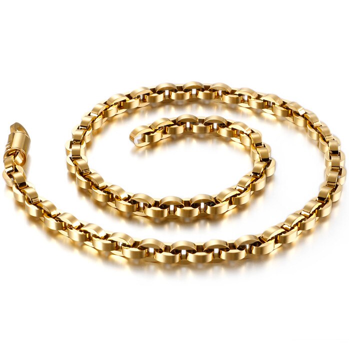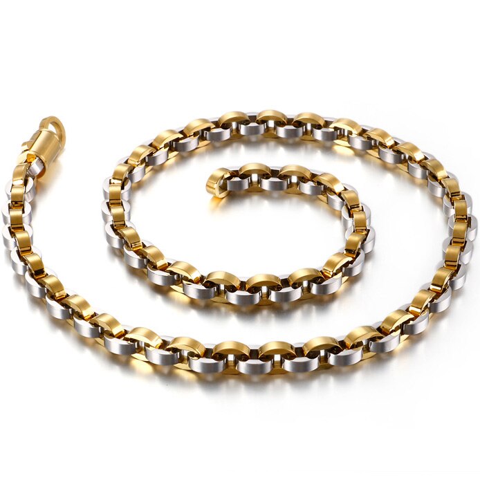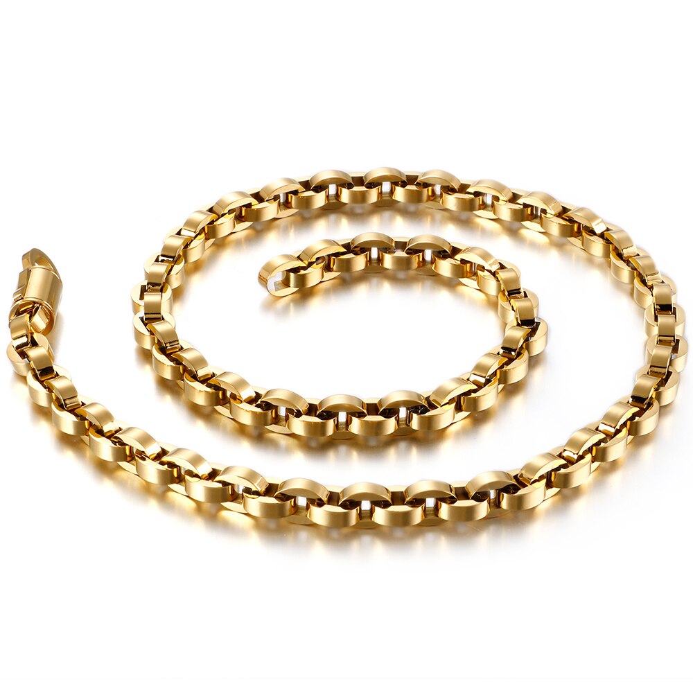 Collar chapado en oro para hombre, cadena de eslabones de 9 mm de ancho y 63 cm de largo, de acero inoxidable resistente.