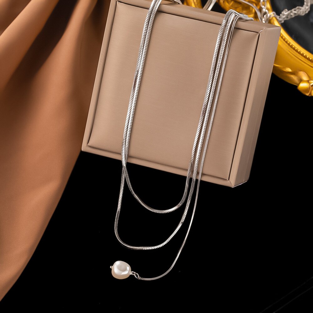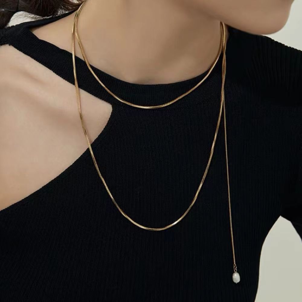 Joyería de oro 585 - Collar con colgante de perla barroca de cadena extralarga chapada en oro de acero inoxidable 316L para mujeres y niñas, joyería de alta calidad.