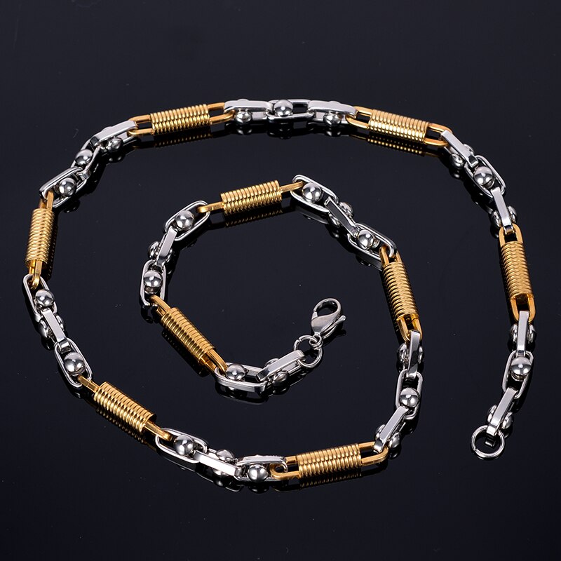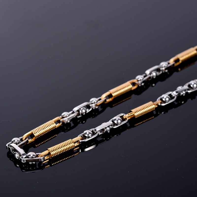 Gargantilla de cadena de acero inoxidable de 5 mm de grosor con baño de oro y color plata para hombre.