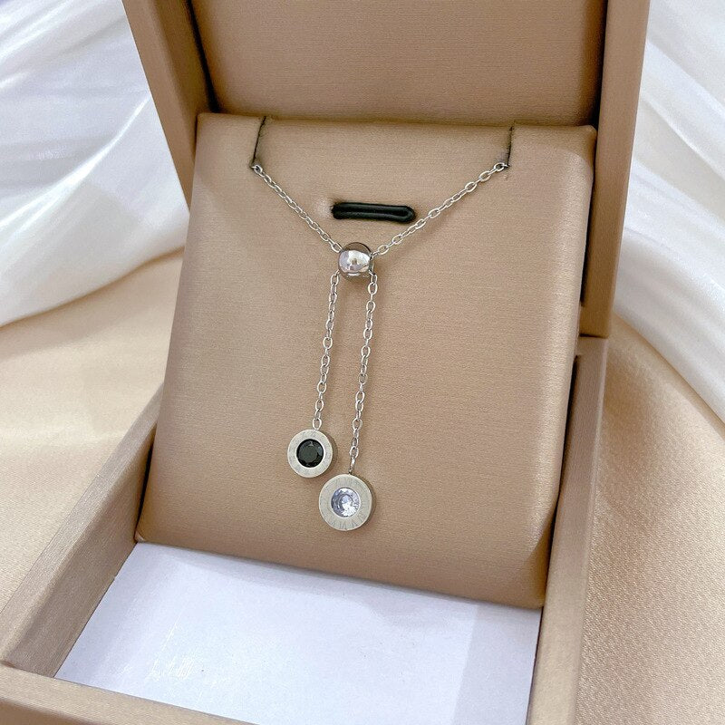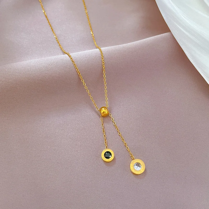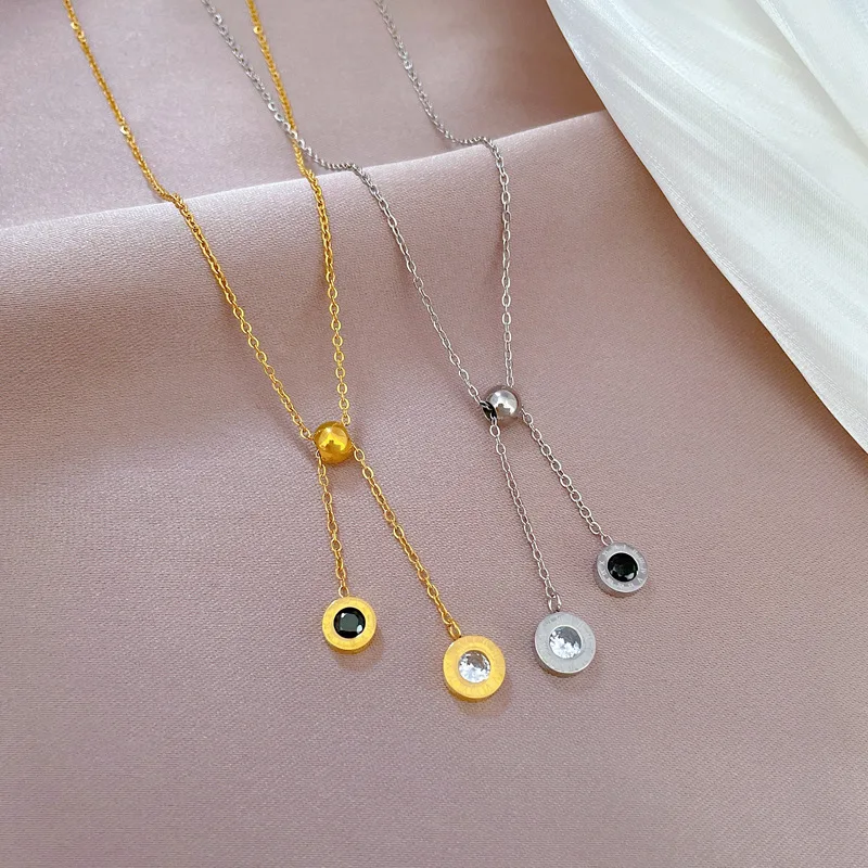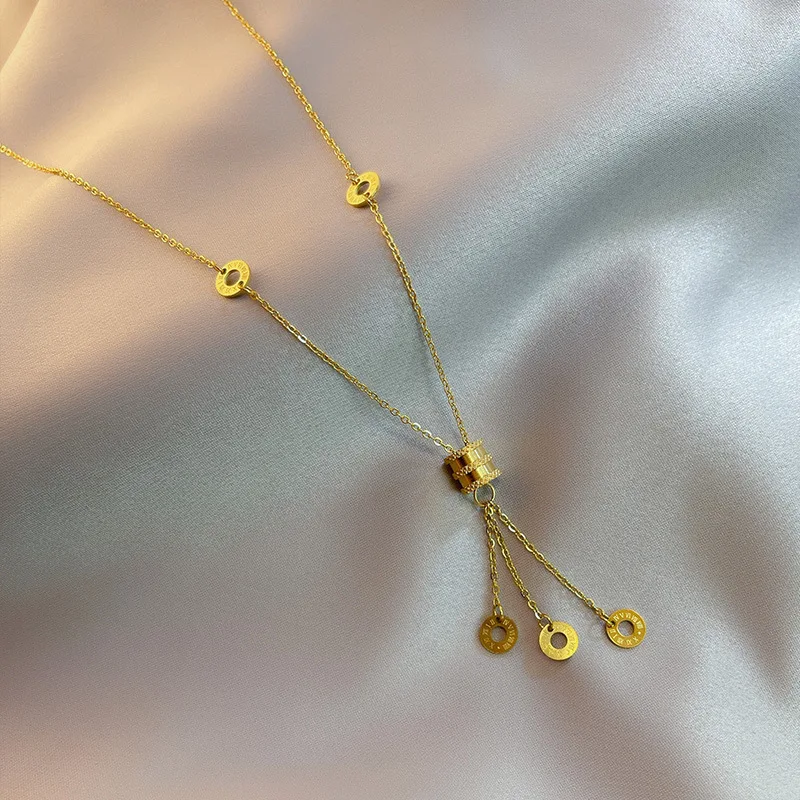 Collar con colgante de borla larga de disco con números romanos, chapado en oro, de acero inoxidable 316L, sencillo y moderno, para mujeres y niñas, ideal para bodas.