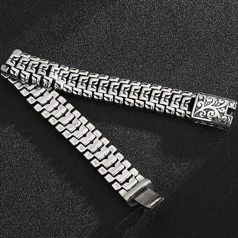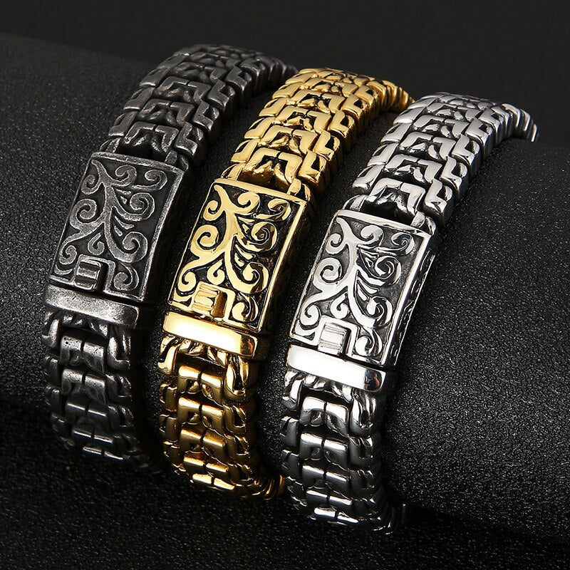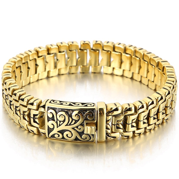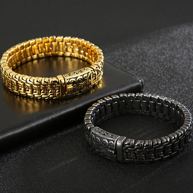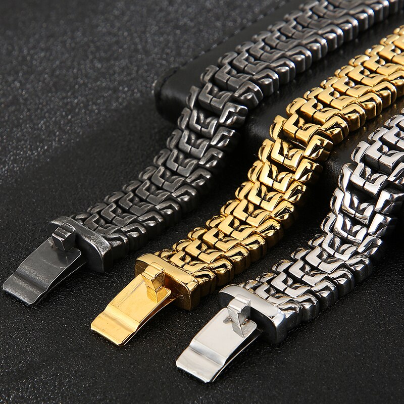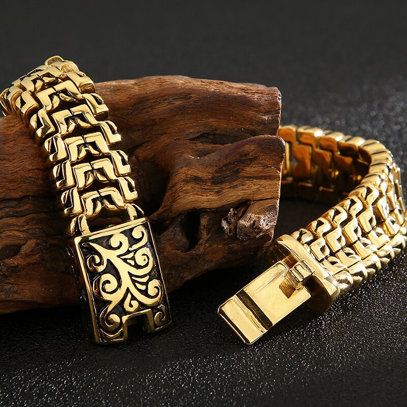 Pulseras de acero inoxidable macizo chapadas en oro para hombre. Pulsera para hombre. Recién llegadas. Asas en la correa de mano. Accesorios de joyería.