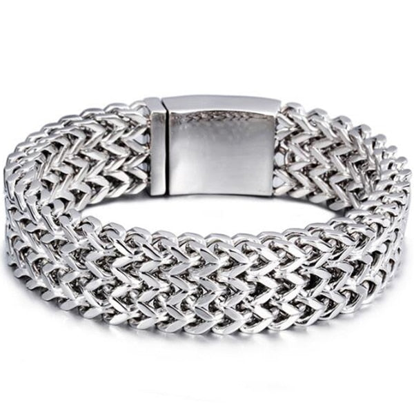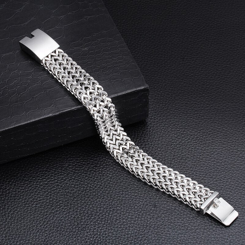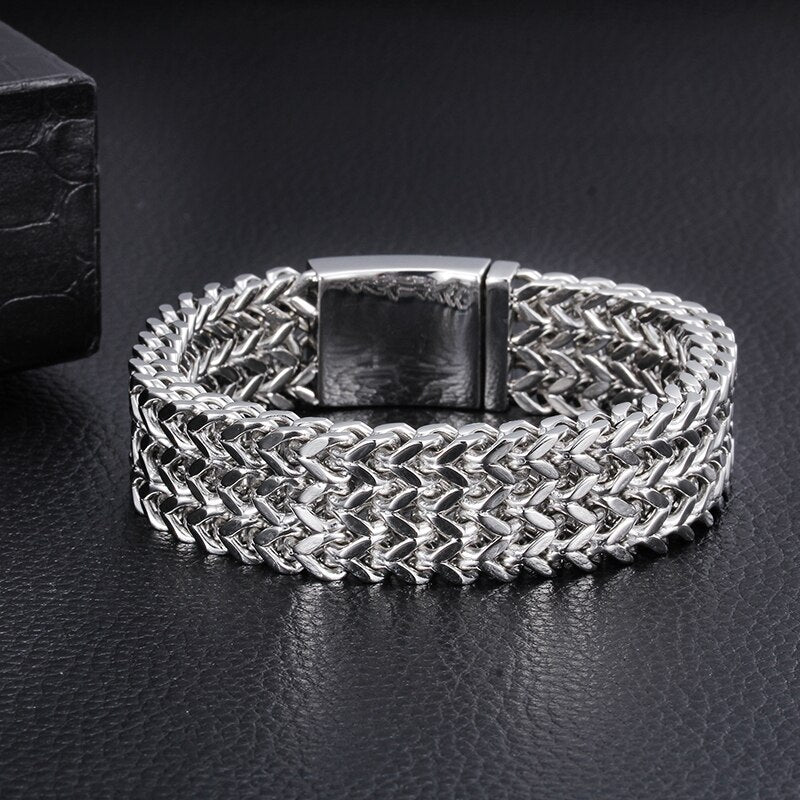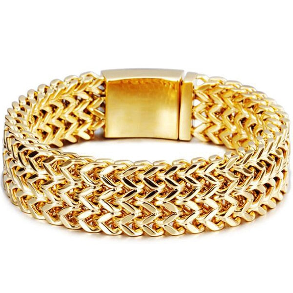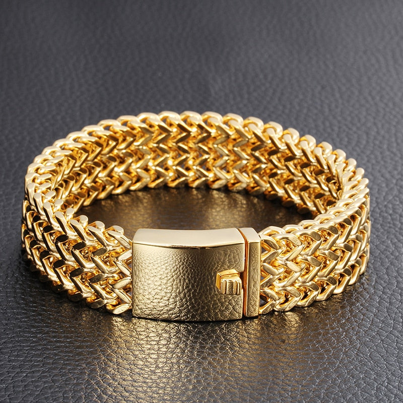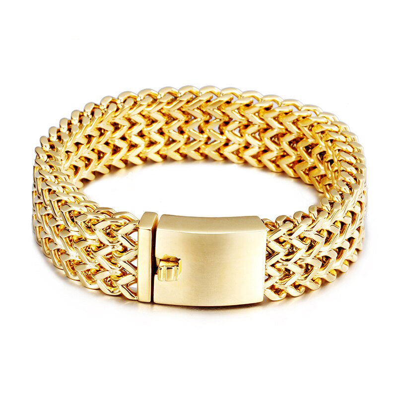 Pulsera de acero inoxidable chapada en oro para hombre, cadena de eslabones de 18 mm con doble fila, brazaletes y pulseras para hombre.