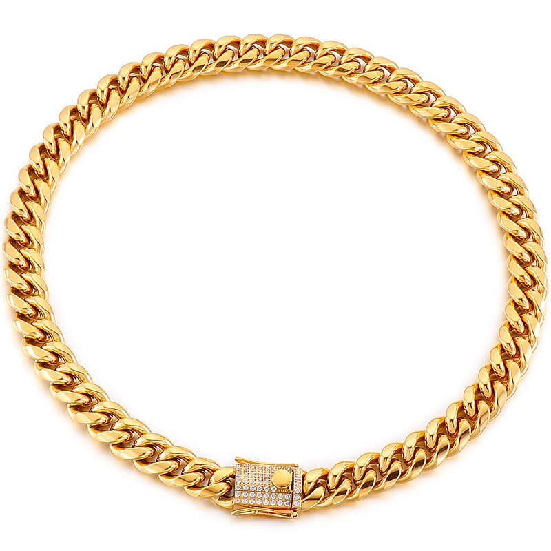 Gargantilla de acero inoxidable chapada en oro para hombre, 45 cm de largo y 12 mm de ancho, cadena de eslabones cubanos gruesos, estilo punk hip hop, de metal.