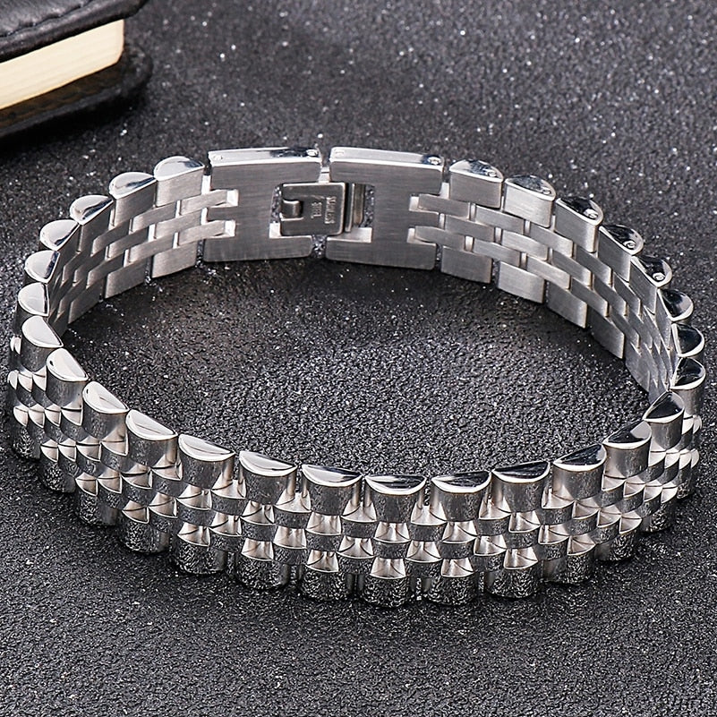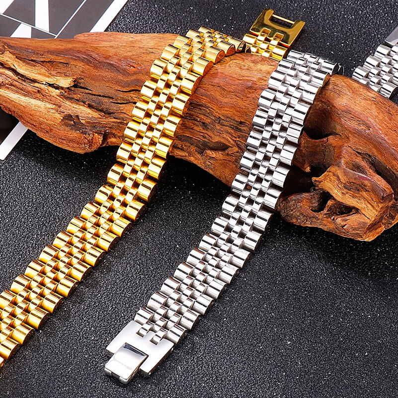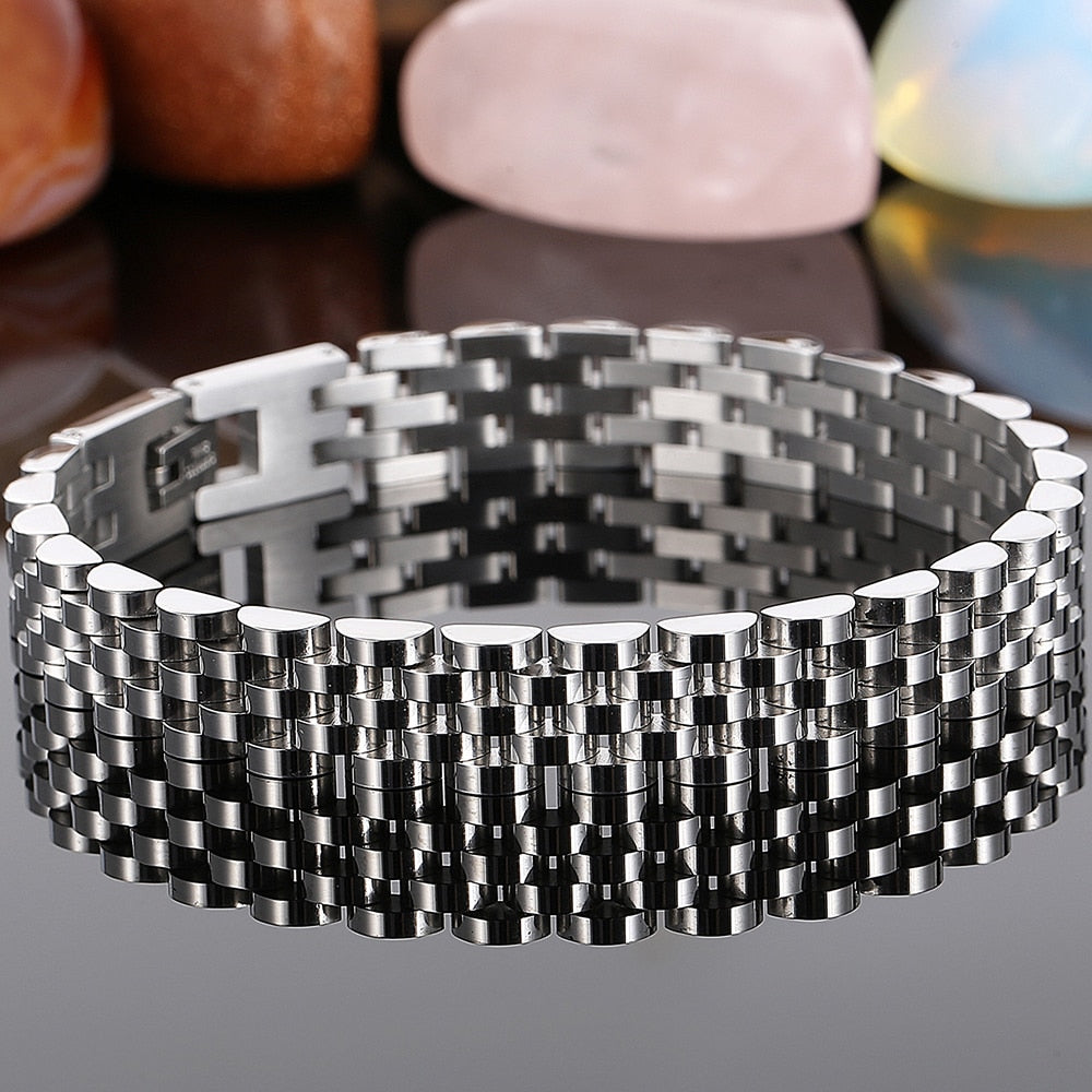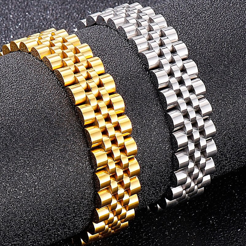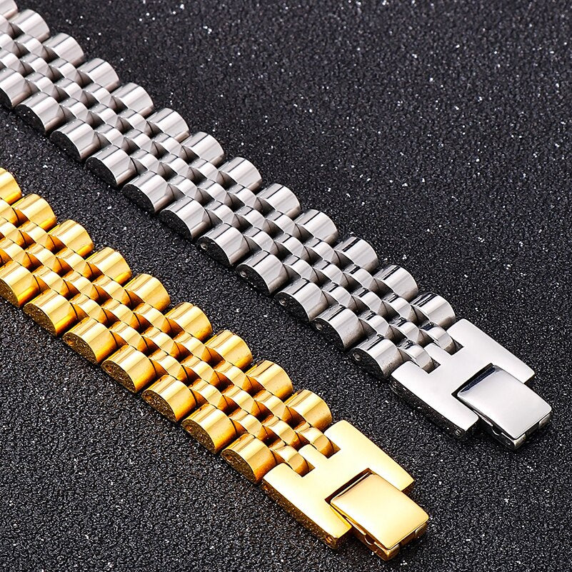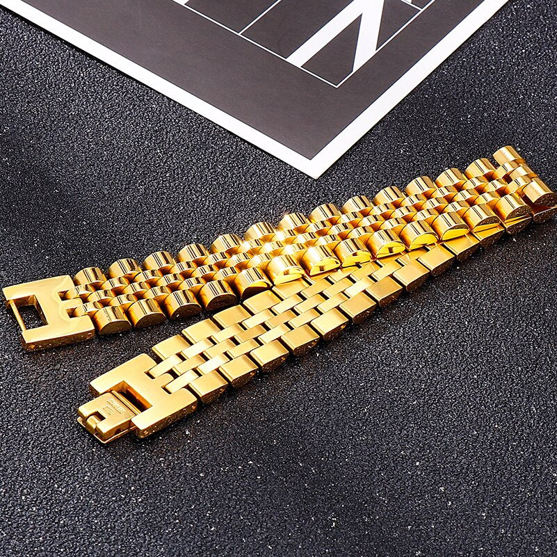 Pulsera de acero inoxidable chapada en oro para hombre y mujer, de 15 mm de ancho y cadena ajustable.